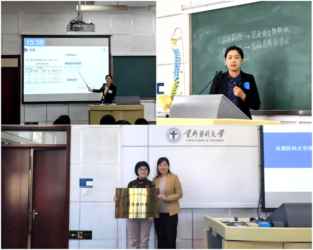 经过激烈角逐,评委们从教学内容、教学设计、语言教态、教学特色、教学反思等多个维度进行综合评定。最终评选出各个奖项。基础组李林英老师表现突出,荣获一等奖、最受学生欢迎奖、最佳教案奖和最佳现场演示奖四项大奖;范伊夫老师荣获二等奖;刘佳、王磊两位老师荣获三等奖。临床组中,潞河临床医嗨皮漫画 黄鑫老师获得一等奖;良乡教学医院晁宁老师、怀柔教学医院刘博华老师获得二等奖;平谷教学医院王珊珊老师获得最佳教案奖;潞河临床医嗨皮漫画 黄鑫老师获得最佳现场演示奖及最受学生欢迎奖;潞河临床医嗨皮漫画 还荣获最佳组织奖。嗨皮漫画 领导为获奖教师颁发了荣誉证书并表示热烈祝贺。