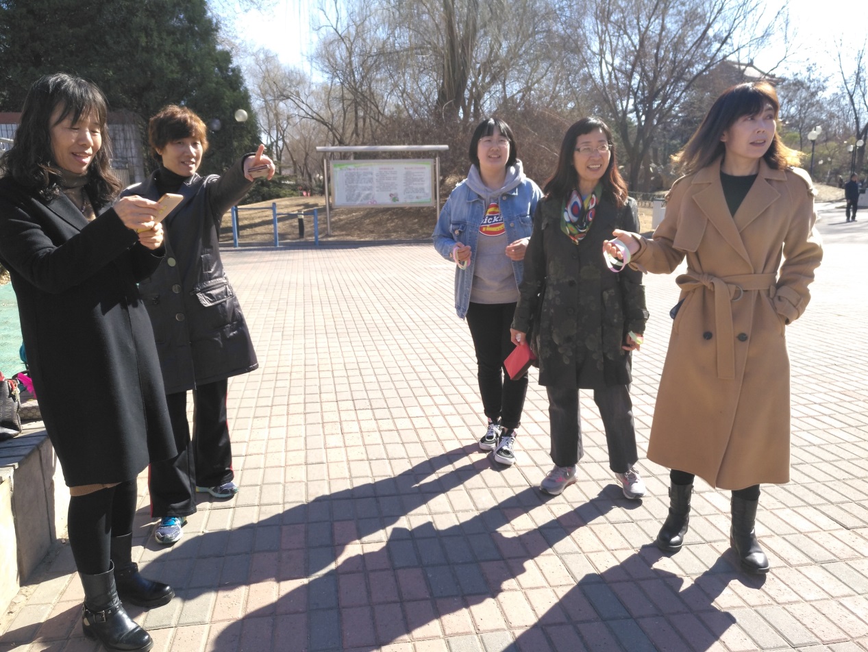 嗨皮漫画 与学校工会同步织教职工庆三八节活动,全体教职工们三五成群,来到顺义人民公园,环湖游山,踏青迎春,舞动彩带,踢飞堂"燕",春风拂面,每个人脸上挂满春意,一年的美好从脚下开始了