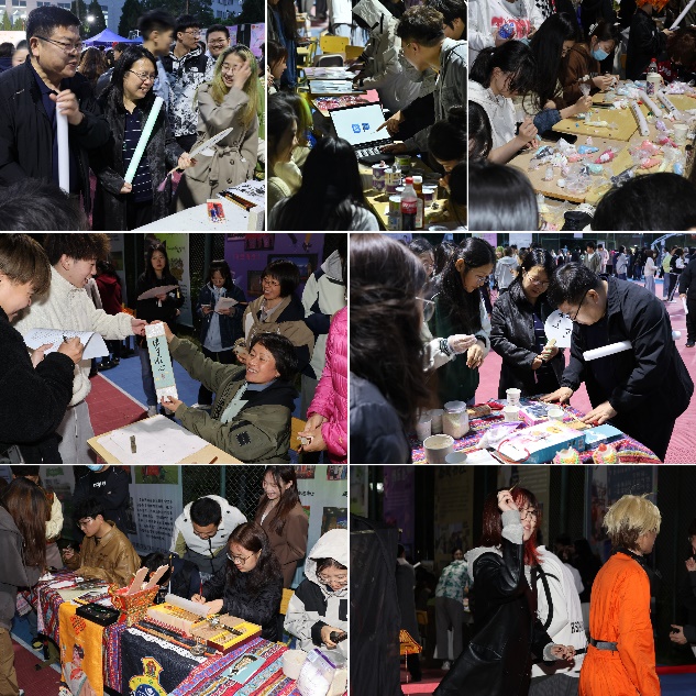 学生会、红会、社团等部门精心筹划,展示区域的活动各具特色,思贤书社、童嘎社、动漫社的社团活动以特色鲜明、精彩有趣吸引了师生的注意力,现场不仅有书法展示,还有藏文姓名书写以及各种手工DIY和猜谜活动,嗨皮漫画 领导、社团指导教师和在场同学积极互动,大家青春活力十足,师生携手共赴一场“青春之约”。