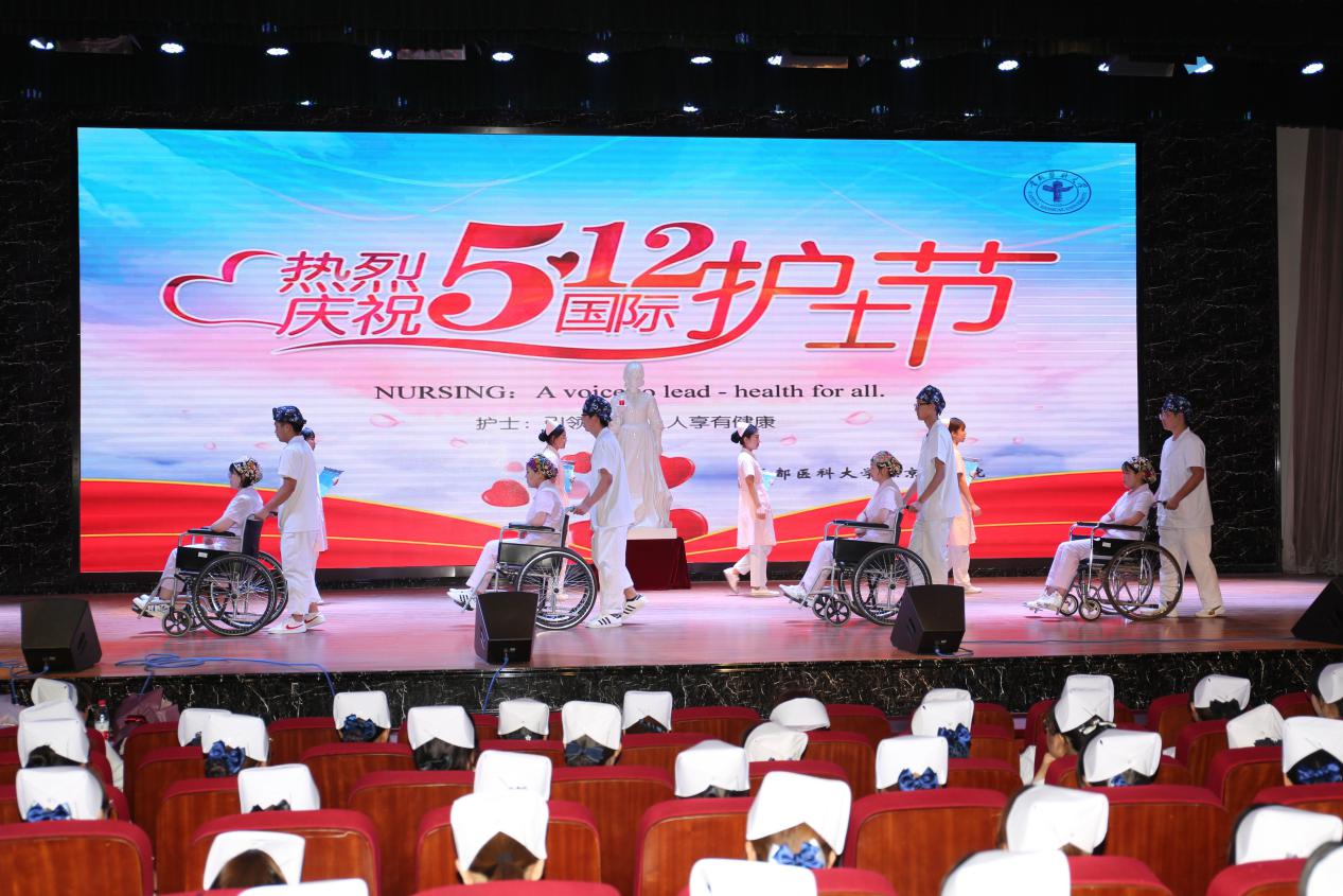 2019年护士节的主题是“护士:引领之声—人人享有健康”。为了激励学生的专业学习和实操技能水平提升,授帽仪式结束后,2018级护理学学系同学进行了静脉留置针输液技术、气管切开护理等护理技能展示及护理礼仪表演。学生严谨规范的操作,熟练流畅的节奏,优雅端庄的举止给台下的专家、学生留下了深刻的印象。2018级三年制1班刘一欣同学代表学生发言,表示今后要更加努力学习,不断完善和充实自己,掌握扎实的护理知识,具备过硬的护理操作技能,为今后的工作打下坚实基础。