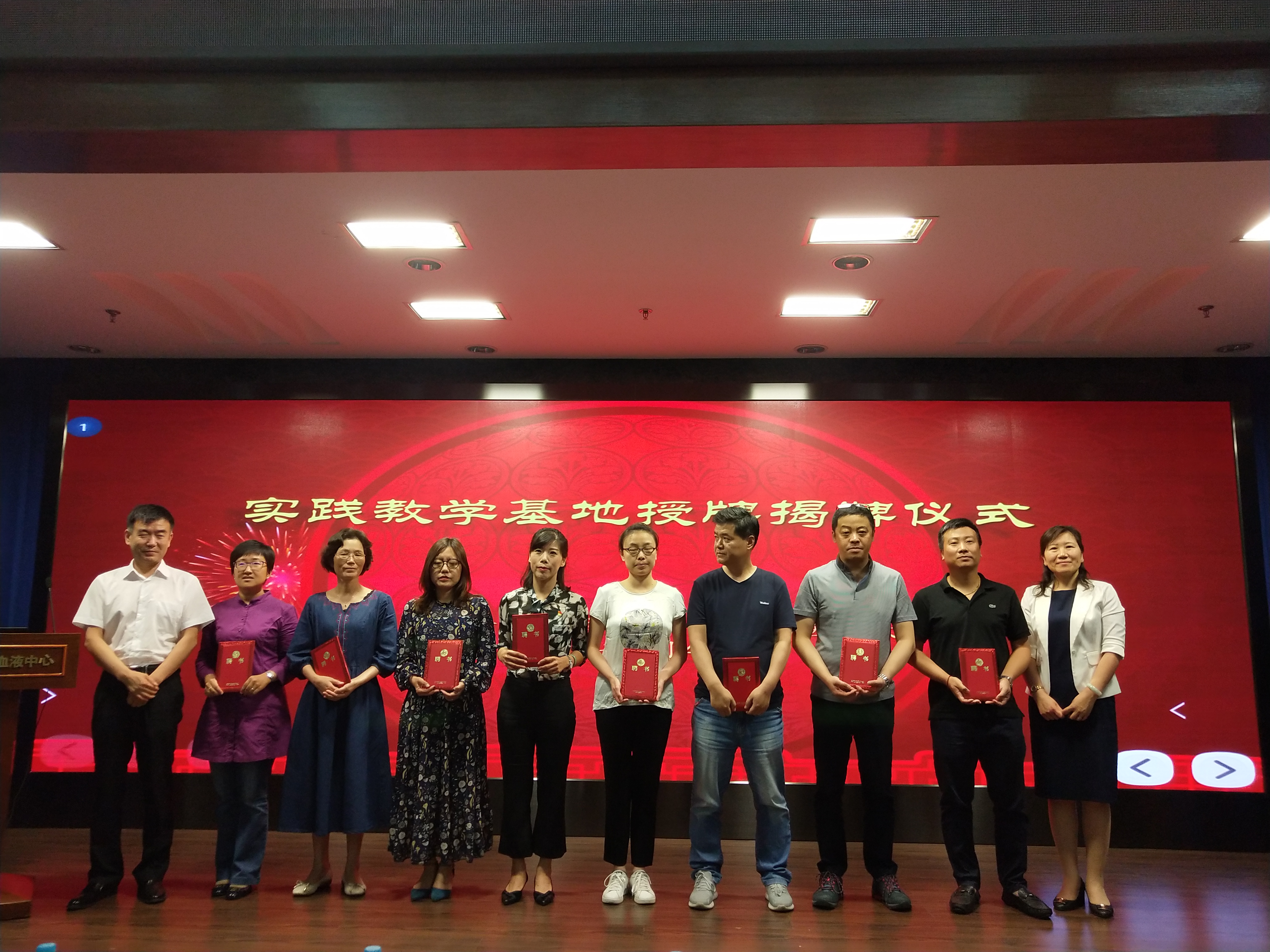 王松灵副校长和刘江主任共同为基地揭牌。吴兵书记和杨红院长为教学基地遴选的17名兼职教师颁发了聘书。