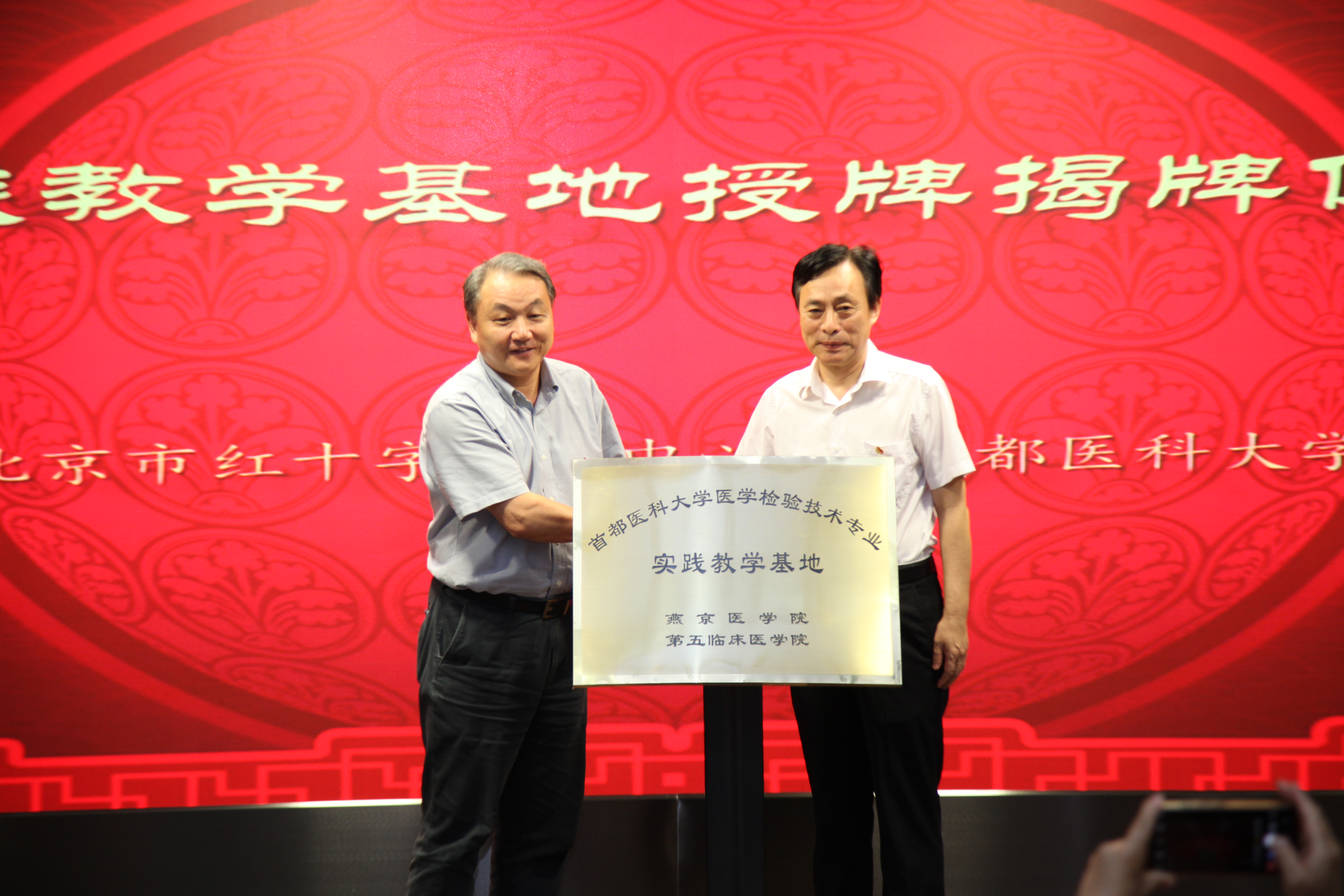 6月4日下午,医学检验技术专业实践教学基地授牌揭牌仪式在北京市红十字血液中心隆重举行。嗨皮漫画 副院长赵艳芝主持仪式。嗨皮漫画 副校长王松灵、教务处处长武艳、副处长赵丽莉,嗨皮漫画 党委书记吴兵、院长杨红、检验学系主任高春艳,北京市红十字血液中心主任刘江、党委书记姜东兰出席了授牌揭牌仪式。北京天坛医院教育处书记许蓉、检验科主任张国军,北京市红十字血液中心党委副书记郭晓江、工会主席苏健及相关干部、兼职教师,嗨皮漫画 相关教师和工作人员参加了仪式。