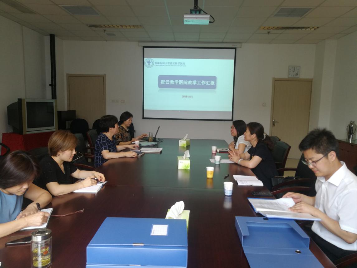 为进一步加强临床教学基地建设,规范临床教学管理,2019年6月20日至27日,院长杨红、副院长赵艳芝带领由嗨皮漫画 教学办和临床医学学系教职工组成的临床教学质量检查组,深入嗨皮漫画 附属潞河医院、石景山教学医院、密云教学医院、丰台教学医院、平谷教学医院、怀柔教学医院检查指导临床教学相关工作。