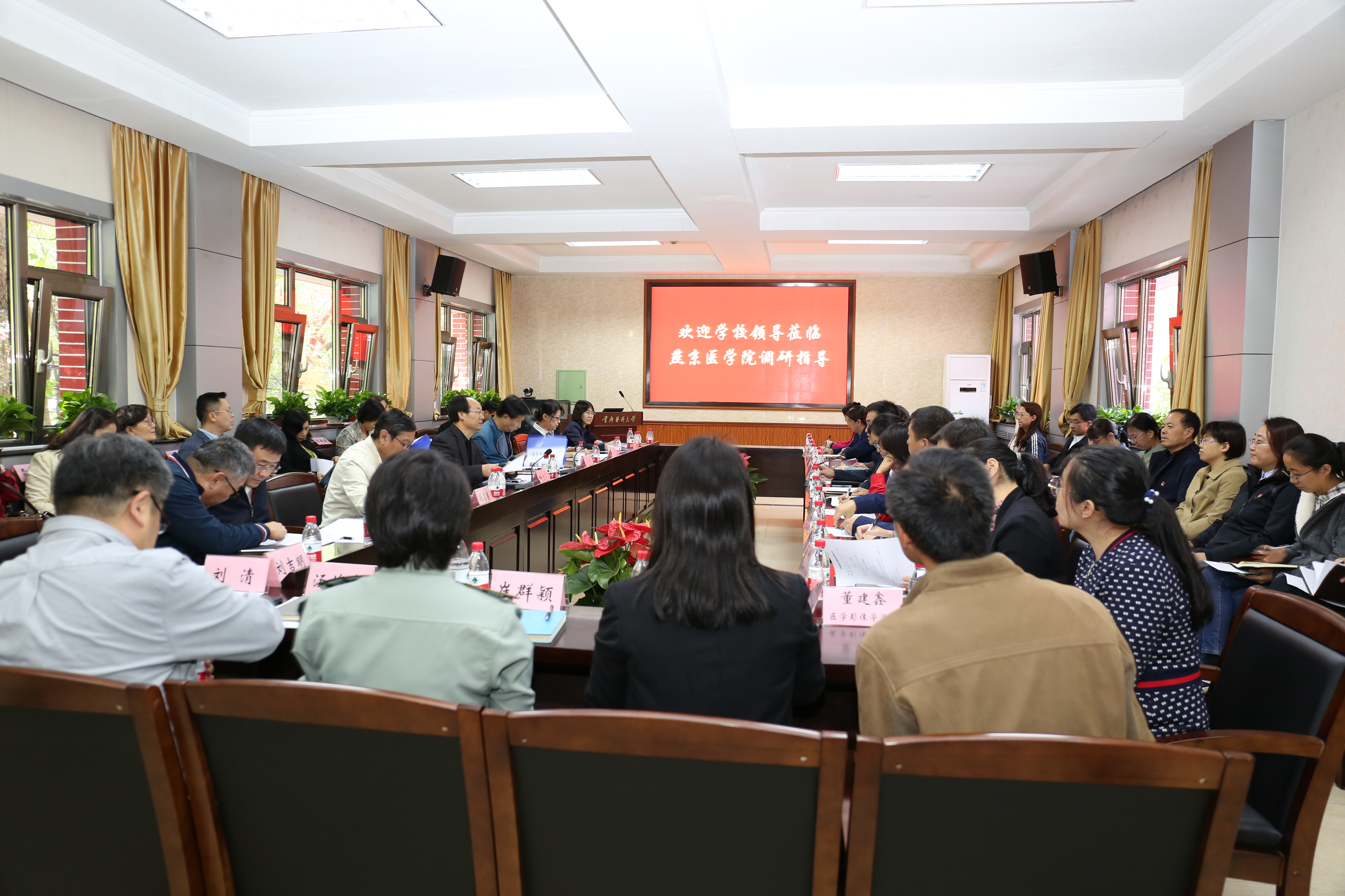 为扎实推进学校“不忘初心、牢记使命”主题教育工作,10月11日下午,校党委书记呼文亮、校长饶毅一行来到嗨皮漫画 调研。党委副书记冯喜春、党委副书记刘芳、副校长曹文军、副校长孙力光和学校部分职能部门负责人一同参加调研。