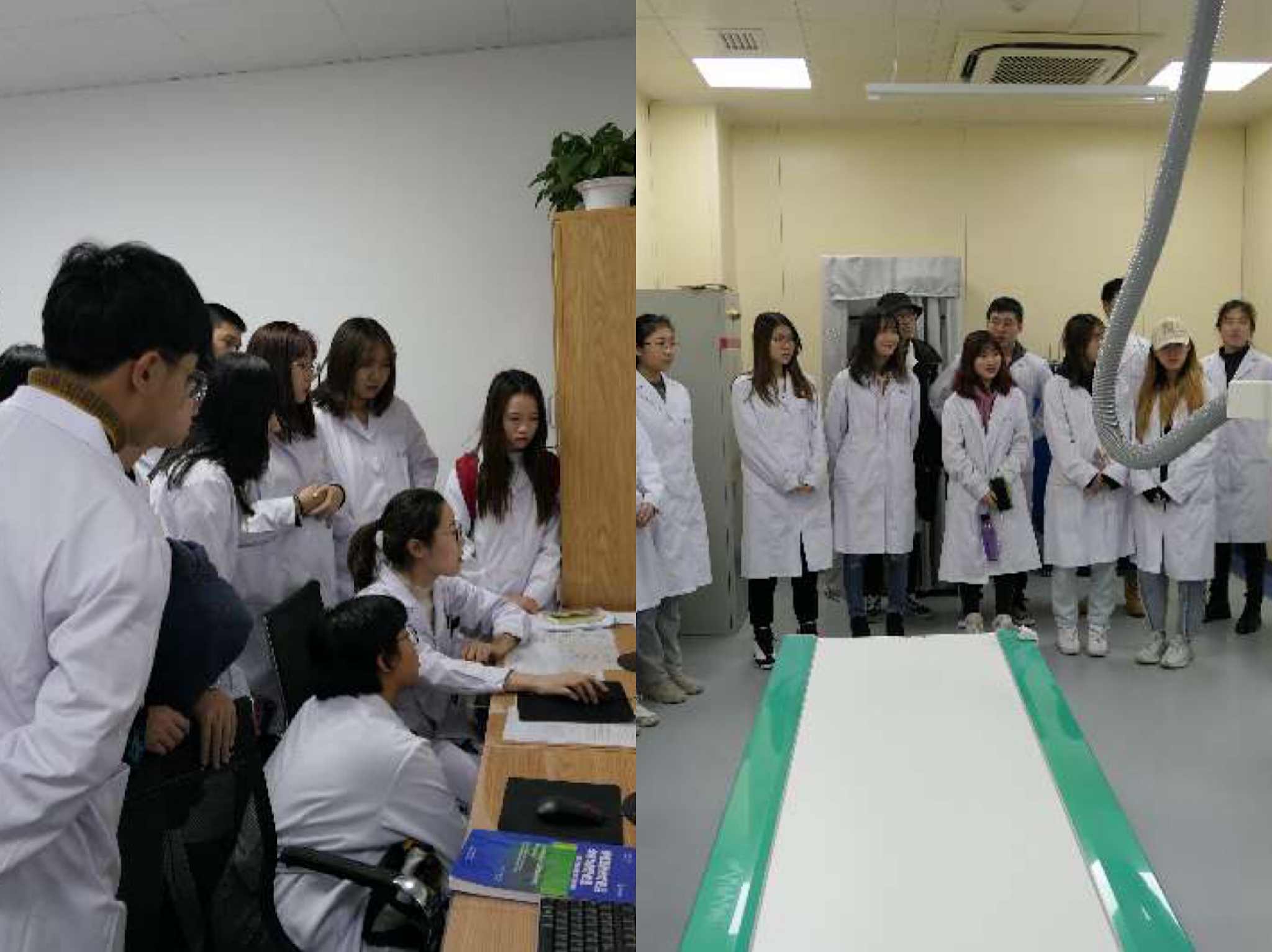 见习活动以小组的形式开展,同学们分别参观了DR、CT、MRI、核医学科以及放射治疗科。在医学影像科,技师长石逸杰为大家实时演示了DR影像成像过程,介绍了系统运行原理,了解了磁共振成像原理,磁共振所在磁场区的检查规则并为学生们简要地介绍了科室的规章和流程。在核医学科,学生们认真聆听PET-CT等设备的工作原理以及对于医疗废料的严格处理要求,对核医学放射方面的知识有了直观深刻的感受。