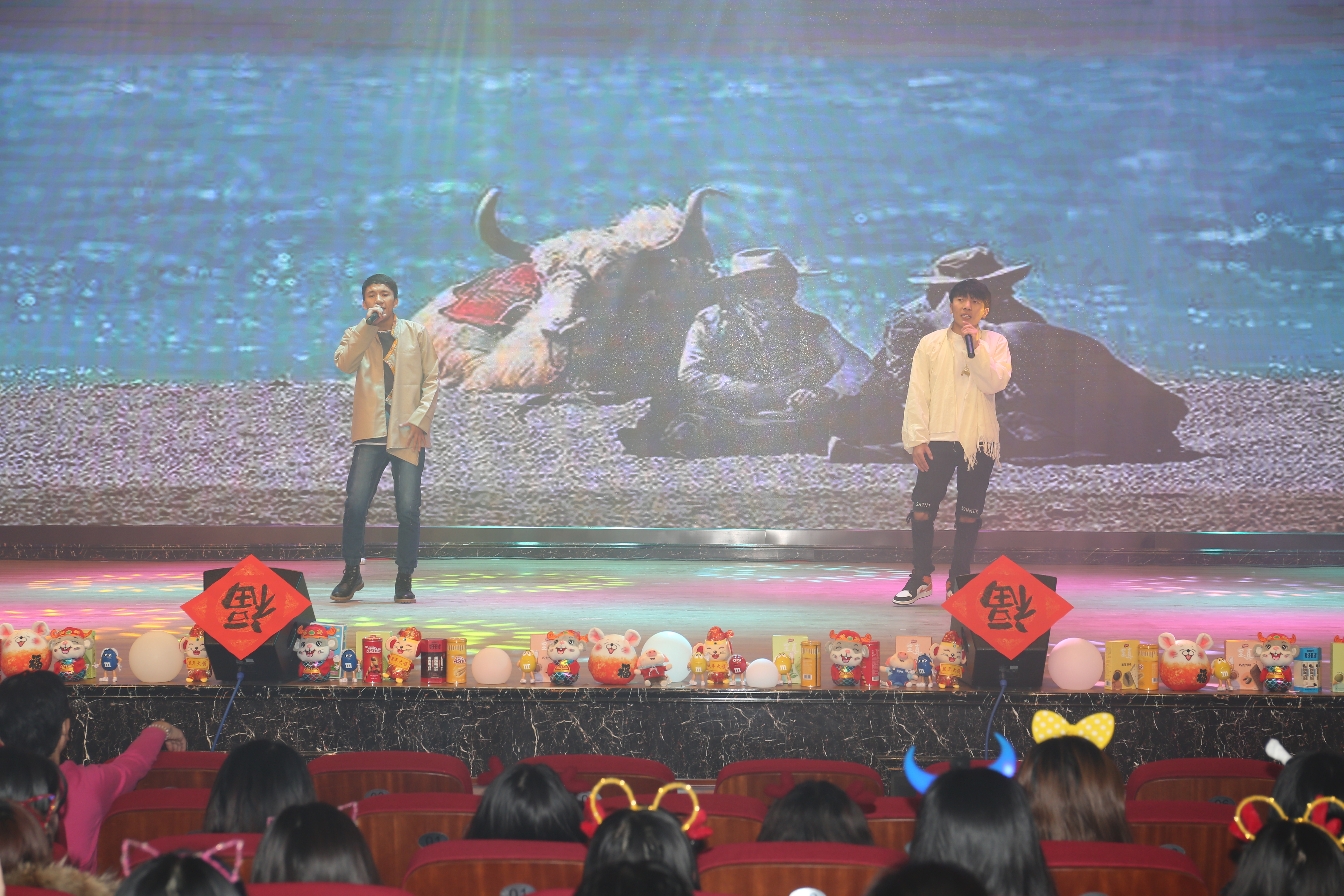 藏族学生带来的对唱歌曲《1376》,欢快喜悦的曲调充满着新春的气息。藏语1376代表心想事成,现场同学们为两位表演者献上白色哈达,在这美好的日子里祝福大家万事胜意,扎西德勒。