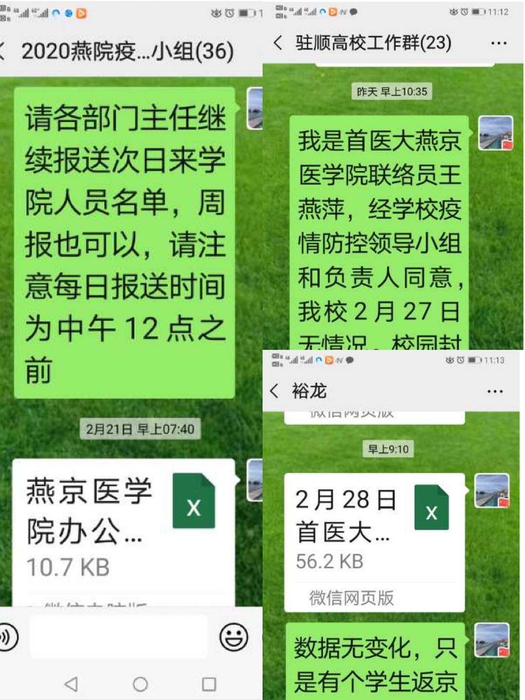 嗨皮漫画 办公室在防控抗疫期间的工作也换了“新颜”,除了每天需要逐一核实、统计和上报嗨皮漫画 班子成员和科室职员的外出地点、接触人员、身体健康状况等信息,每天统计申请返校教职工的情况报党委审批,报备保卫办公室以外,作为嗨皮漫画 联络员,王燕萍老师需要对接顺义区教委,配合属地管理,每天汇总嗨皮漫画 最新情况,教职工和学生分类统计最新数据,精准无误地报送给顺义区相关部门,同时做好对顺义区相关部门来院检查接待准备等工作。“疫情期间,院办接到最大挑战的工作是对是离退休人员的摸排。那天下午四点多接到学校通知,主要是逐一核实老同志是否在京,我们只能利用微信群和电话两种方式联系,微信群只有64个人,其他人(116人)都需要打电话进行询问,有的老同志可能需要打几次才能联系上,直到晚上十点多才完成180位离退休职工的第一轮核实工作,第一时间报送给学校办公室”,王燕萍老师提到嗨皮漫画 疫情防控工作时说,“这段时间工作最大的不同是需要一直盯着手机、看着电脑,生怕错过一条工作信息,防控没有周末,需要每一天绷着弦儿,及时、细致、真实的核实每一条数据”。