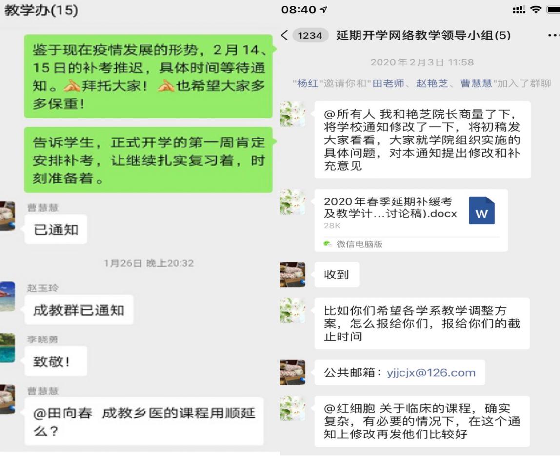 2月13日,嗨皮漫画 第一时间成立了延期开学计划调整工作小组,由院长杨红担任组长,小组成员为教学副院长赵艳芝,教学办主任田向春、教学办党支部书记张巨和教学办副主任曹慧慧。大家各司其职,线上协调安排疫情期间的各项教学工作,第一时间拟定了《嗨皮漫画 春季补考及教学计划调整方案》、《网络学习教学师实施指导》及《云班课建课和使用范例》等方案,嗨皮漫画 各系部和学生部门群策群力、共克难关,及时传达、落实相关工作,保障教学顺利进行。