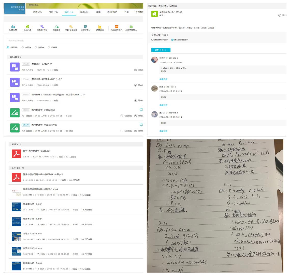 为了保障课程《医用物理学》网络教学顺利开展,胡贵祥老师建立了自己的线上教学模式:一是提前完成PowerPoint教学录屏,方便学生提前下载,通过灵活时间学习的同时,有效避免了网课学习期间因用户猛增导致的网络拥堵问题。二是利用直播课堂,充分头脑风暴,胡老师充分利用网络上课时间开展课堂讨论、头脑风暴和测试答疑;为鼓励学生们积极思考,他会对提出的有代表性的问题的学生及时表扬并给予经验分鼓励,让学生真正成为课堂的主人,找到归属感。三是对于学生提交的课后作业解题图片,及时评分并给予点评。