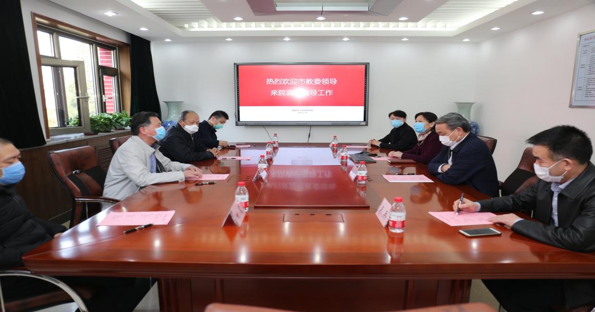 3月24日下午,市教委副主任黄侃、高教处处长刘霄、职成处处长王东江、余俊一行到嗨皮漫画 展开深入调研,嗨皮漫画 副校长王松灵院士、教务处处长武艳、嗨皮漫画 党委书记吴兵、院长杨红一同参加调研。