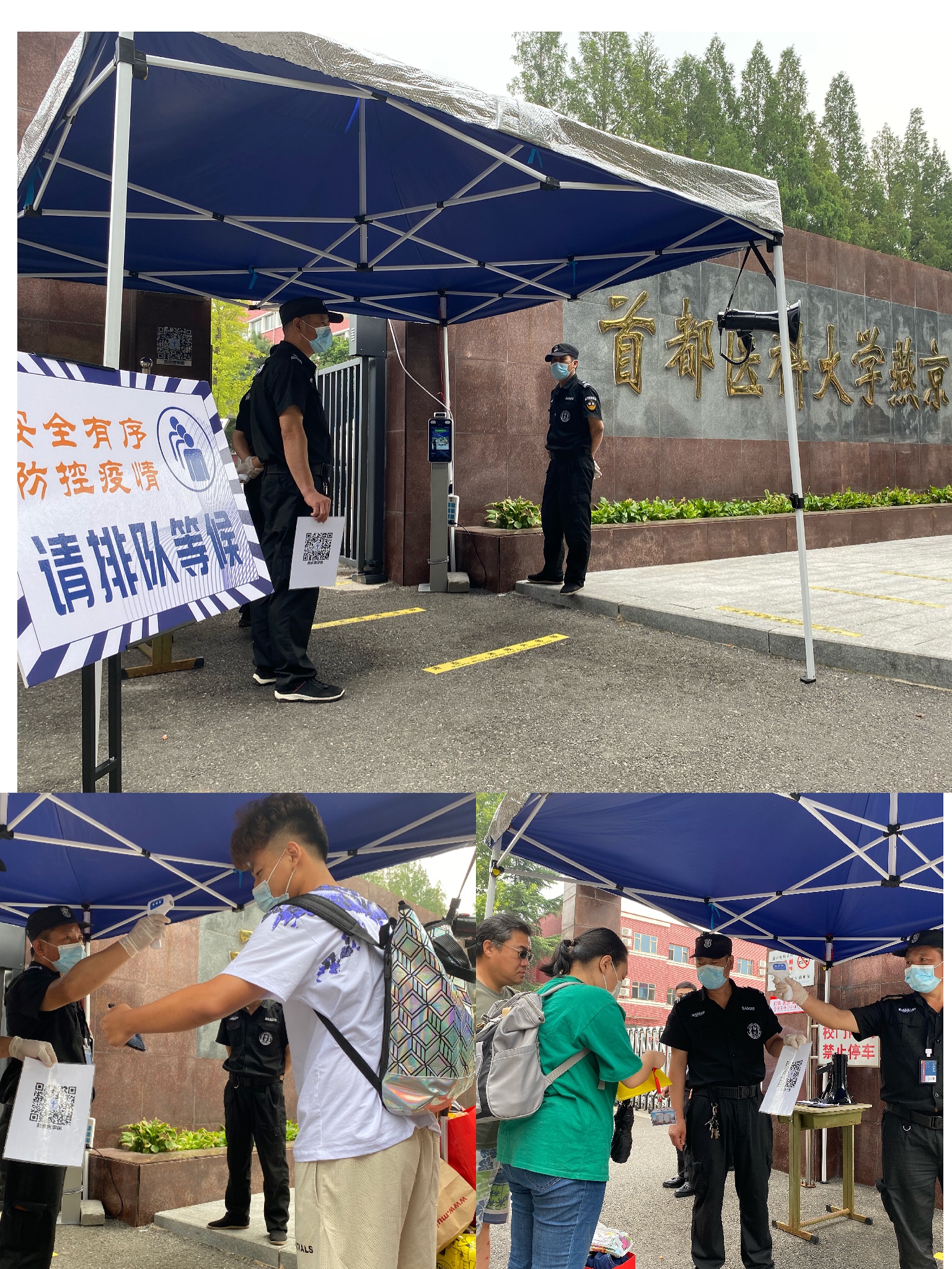 在嗨皮漫画 门口,学生主动接受体温测量,通过学校“疫情管理系统”获取“校园通行码”,并主动向安保人员出示相关证件。