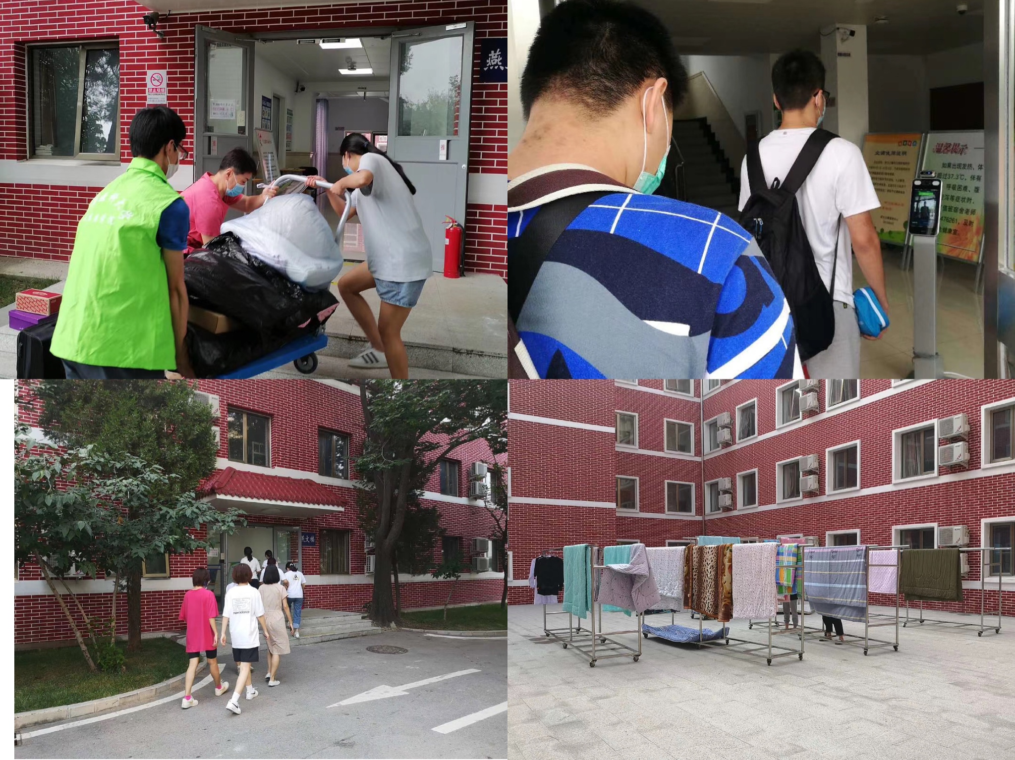 公寓管理人员对审核合格的学生进行第二次体温检测及七日内核酸检测阴性证明查验,学生凭校园一卡通进出公寓。宿管老师们主动帮同学们搬行李、晒被褥,所有精心的准备和温馨的服务只为大家安全返校、放心归来。
