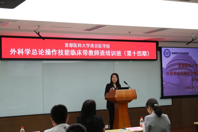 为进一步提升教学医院临床教学师资水平,规范外科学总论基本操作技能,9月11日,由我院举办、宣武医院承办的2020年外科学总论技能培训班在宣武医院教学楼举行。嗨皮漫画 教务处副处长赵丽莉、嗨皮漫画 院长杨红、副院长赵艳芝、宣武医院教育处处长王亚军同各教学医院科教科人员、参培教师一同出席会议,会议由王亚军处长主持。