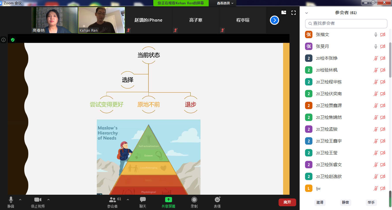 金秋9月,我院检验学学系开展了丰富多彩的新生专业思想教育系列活动。本次新生思想教育活动主要由学籍教育、安全教育、思想教育、学系介绍及培养方案解读、学长和行业专家引路等组成。检验学学系主任高春艳、支部书记李琴、实验室主任许子华、辅导员王文雅及兼职班主任李晶琴和宋亚芳老师和行业专家教授、学系优秀毕业生,从培养方案、工作实践、学籍、实验室安全、思想、生活、理想等不同侧面一起为学系2020级新生进行专业解读,教育和引导新生更好、更快地适应大学生活和专业学习。