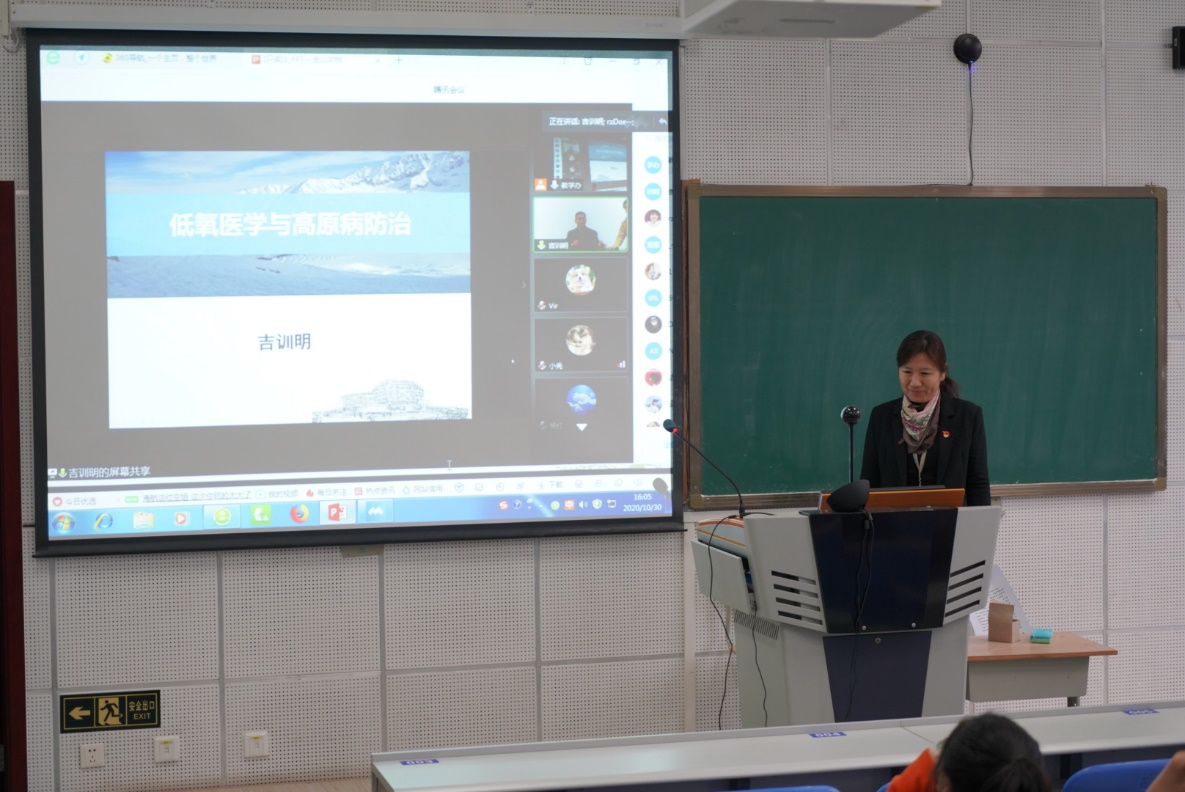 10月30日下午,嗨皮漫画 副校长、北京市脑重大疾病研究院院长吉训明教授为嗨皮漫画 内地西藏班学生作题为“低氧医学与高原病防治”的线上直播讲座。嗨皮漫画 院长杨红、党委副书记崔群颖、西藏学生所在学系党支部书记及辅导员与在院三十多名西藏学生共同参加学习,教学医院内地西藏班学生线上参加讲座。讲座由嗨皮漫画 院长杨红主持。