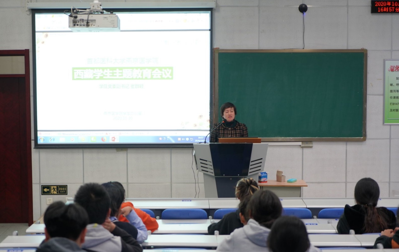 讲座结束后,嗨皮漫画 党委副书记崔群颖主持了西藏学生主题教育会。通过与学生们面对面的交流,切实了解了他们在嗨皮漫画 的学习和生活状况,集中解答了他们的困难和疑惑,并向大家提出了纪律、学业和未来规划等方面的要求与期望,希望大家都能够在校园里健康、快乐、积极地学习和成长。