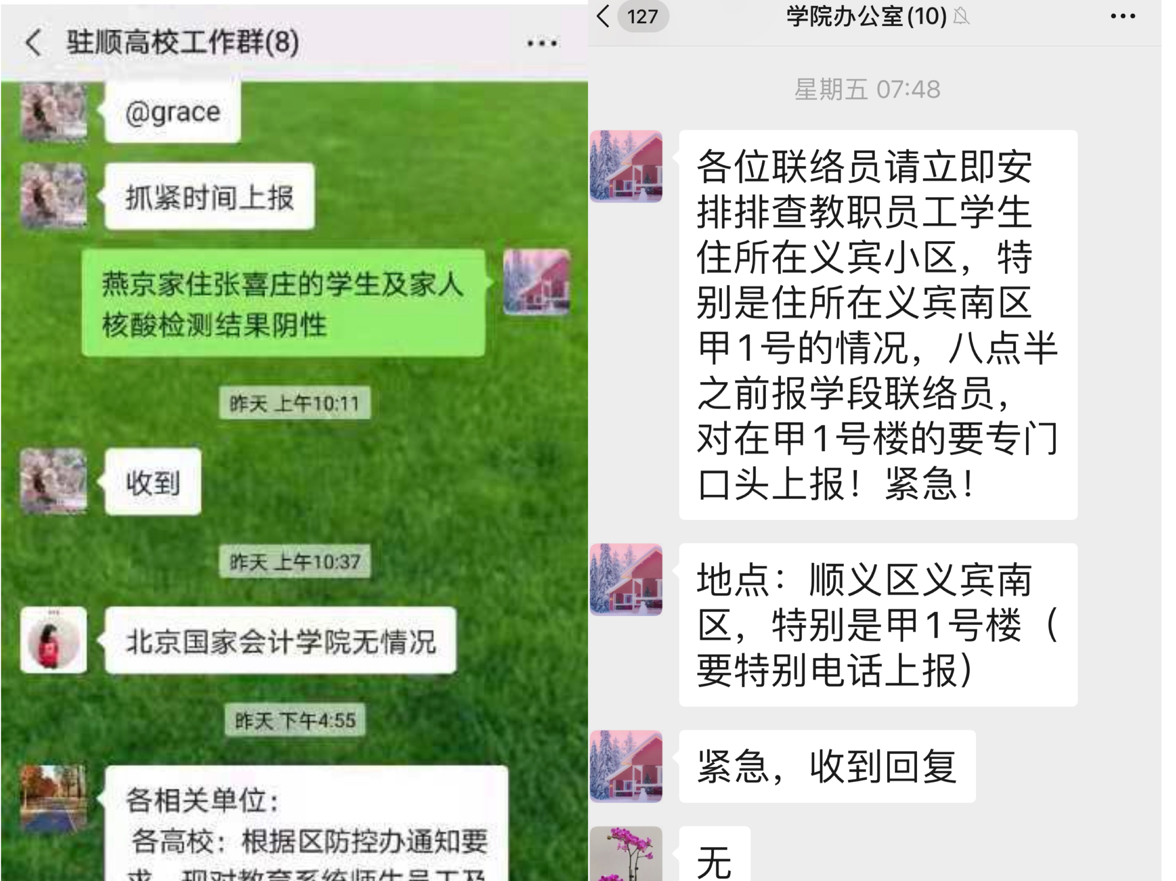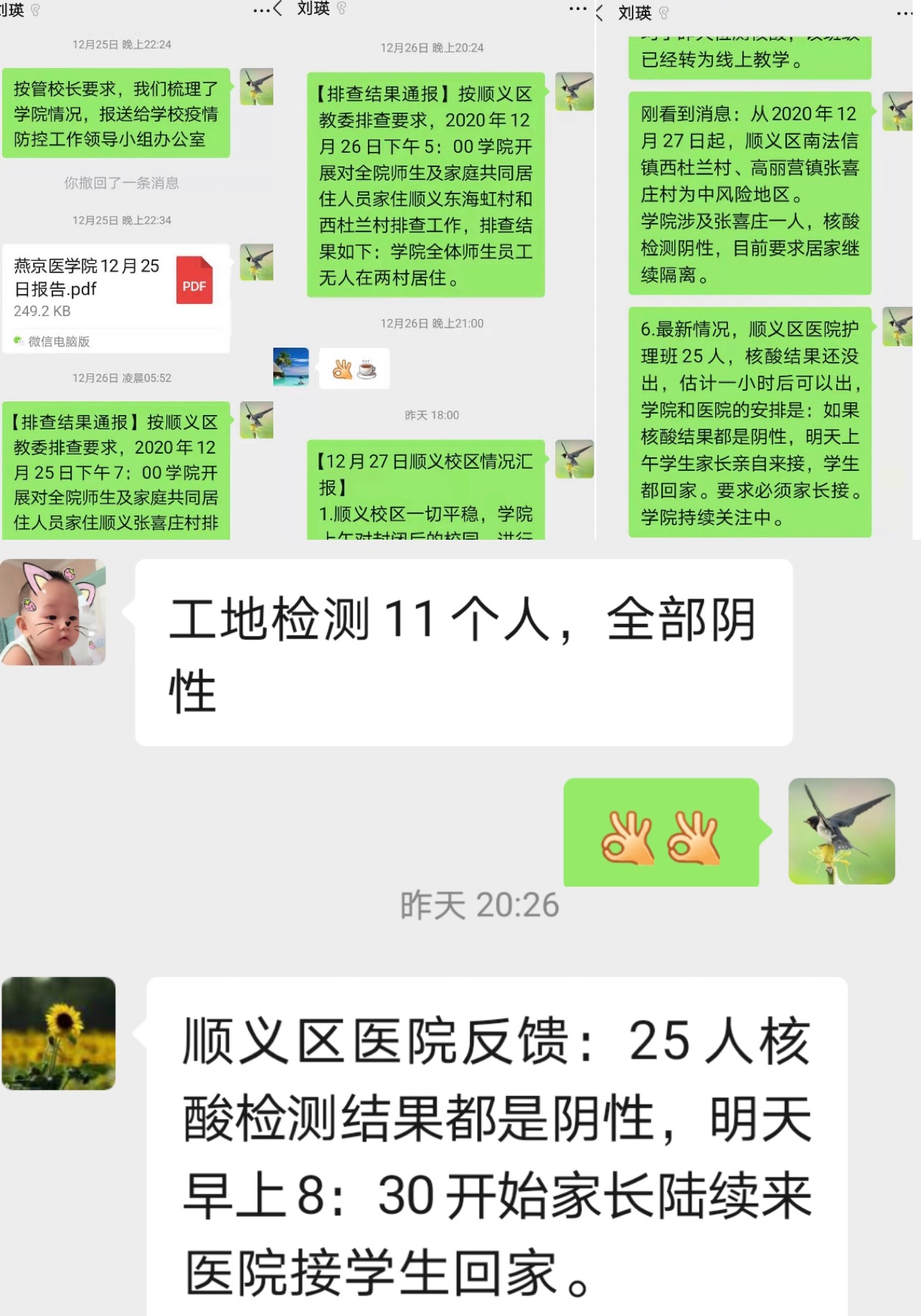 嗨皮漫画 进一步强化校园信息化建设,建立健全密切关注疫情动向、主动排查关联人员的长效工作机制。12月25日,嗨皮漫画 各部门迅速拟定防控相关措施,摸排防控疏漏,配合北京市、顺义区做好各种轨迹筛查工作。嗨皮漫画 办公室、人事办公室第一时间启动信息报送体系,及时、如实、准时将相关情况做好统计,上报学校和顺义区教委。