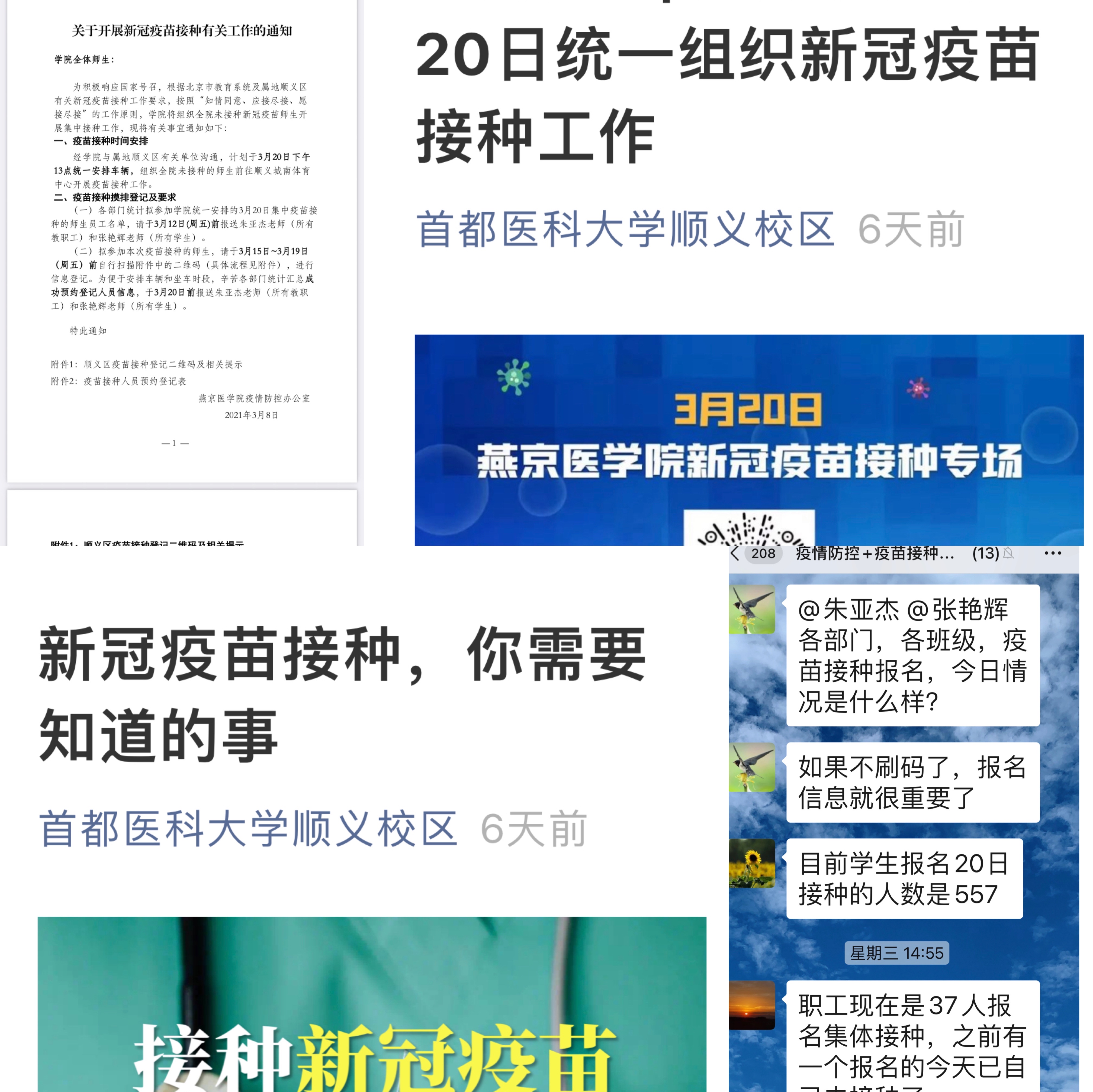 为确保新冠疫苗接种工作顺利进行,嗨皮漫画 2月份成立新冠疫苗接种工作小组,嗨皮漫画 办公室、卫生健康室、人事办公室和学生办公室等相关部门建立联动协调机制,全面细致地做好调查摸底,制定疫苗接种工作方案,召开嗨皮漫画 疫苗接种工作部署会,做实做细相关工作。