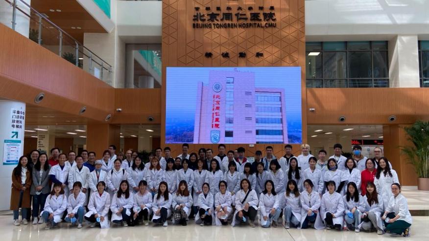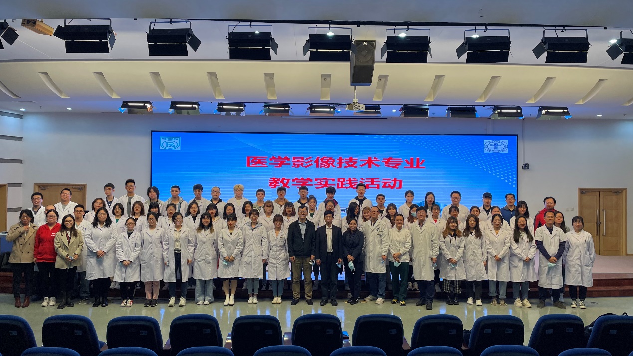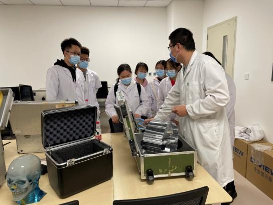在我院杨红院长和医学影像学学系胡玲静主任的带领下,8位教师和49名学生来到同仁医院亦庄院区放射科参加教学实践活动。同仁医院放射科鲜军舫主任、牛延涛主任技师、11名放射技师和3位工程师参加了此次活动。