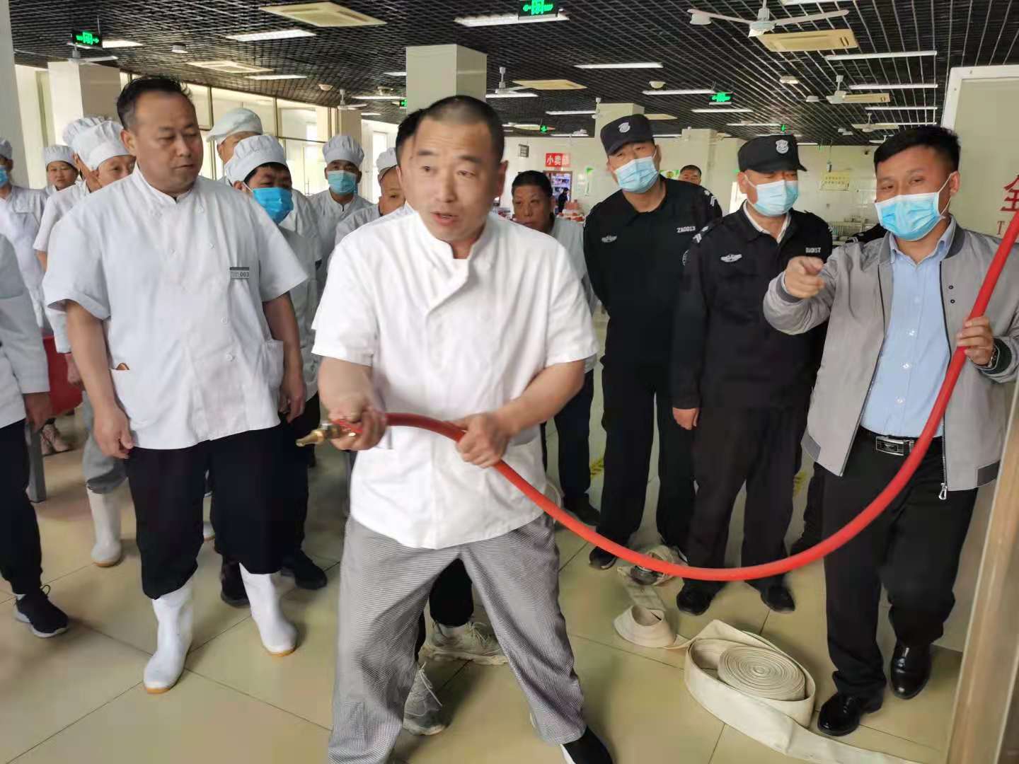 刘老师首先讲解了消防基础知识,指出消防安全要以预防为主,防消结合,发生火险时,大家应该“知位置、知火警、会灭初期火灾、会逃生”。其次,通过实物直观地讲解了消防器材的使用方法以及消防栓的操作流程,并让食堂员工现场进行模拟演练。