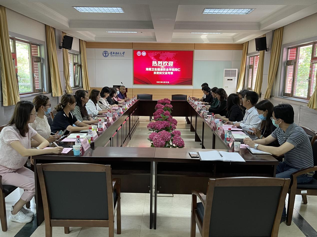 参观结束后,双方院校围绕人才队伍建设、学科专业建设以及乡村医生职业教育培养等内容分享了工作经验,研究了共性问题,探讨了合作空间,增进了双方友谊,取得了良好的成果。