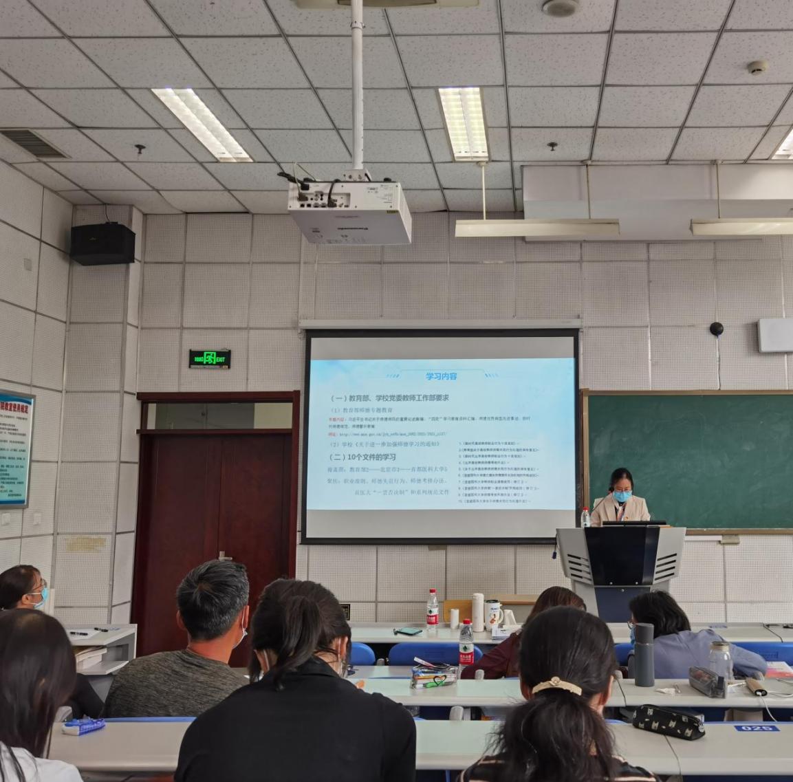 最后,学系党支部书记张丽娟做总结。张丽娟老师号召全体教师在工作中自觉践行新时代教师队伍建设改革精神,争做“四有好老师”,当好“四个引路人”,坚守“四个相统一”。