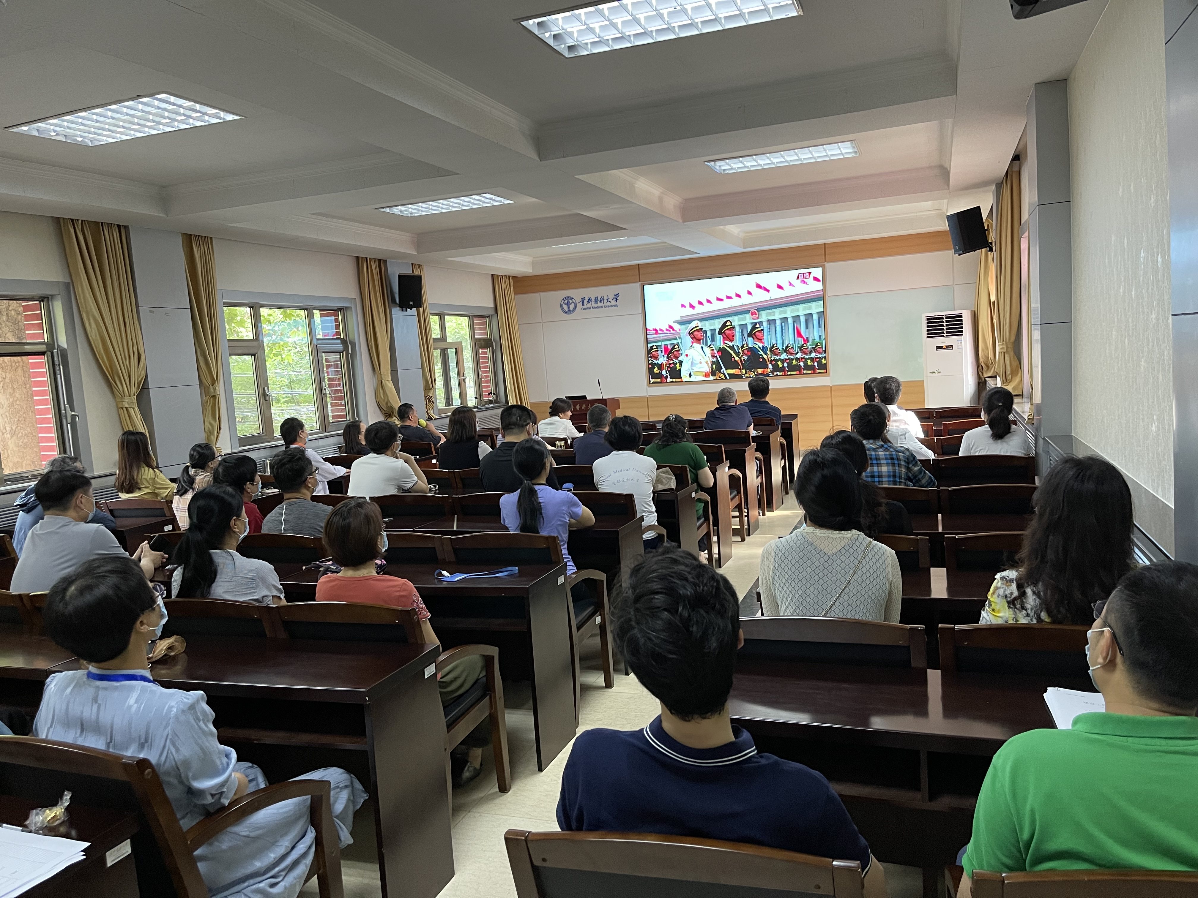 7月1日上午,庆祝中国共产党成立100周年大会在北京天安门广场隆重举行。中共中央总书记、国家主席、中央军委主席习近平发表重要讲话。我院组织党委理论学习中心组成员、各党支部书记、各学系、部门主任以及师生代表齐聚一堂,满怀激动喜悦的心情,在燕勤楼217室收看庆祝大会实况转播,切身感受全国各族人民在党的领导下取得的伟大成就。