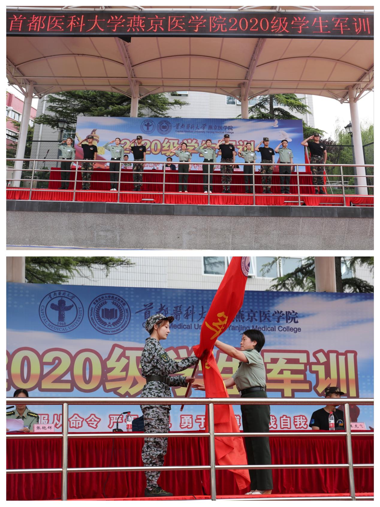 我院2020级学生军训动员会暨开营仪式在雄壮的国歌声中正式开营。首先,学生办公室主任、军训团成员张艳辉宣布嗨皮漫画 军训团组织机构名单和承训部队教官名单。嗨皮漫画 党委副书记、军训团副政委崔群颖向受训各连代表授连旗。随后,军训团教官代表王梓丞发言,他表示会严格按照标准、用优良的作风、饱满的状态完成军训任务。参训学生代表2020级护理专业学生王茹心表达了服从命令、认真训练、克服困难、坚持到底的决心,力争展现燕院学子风采。