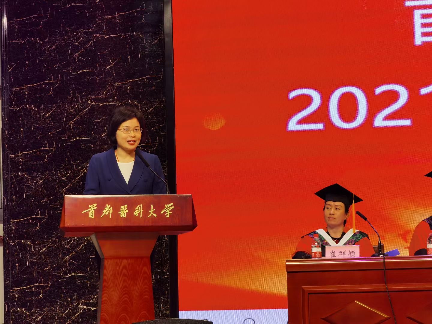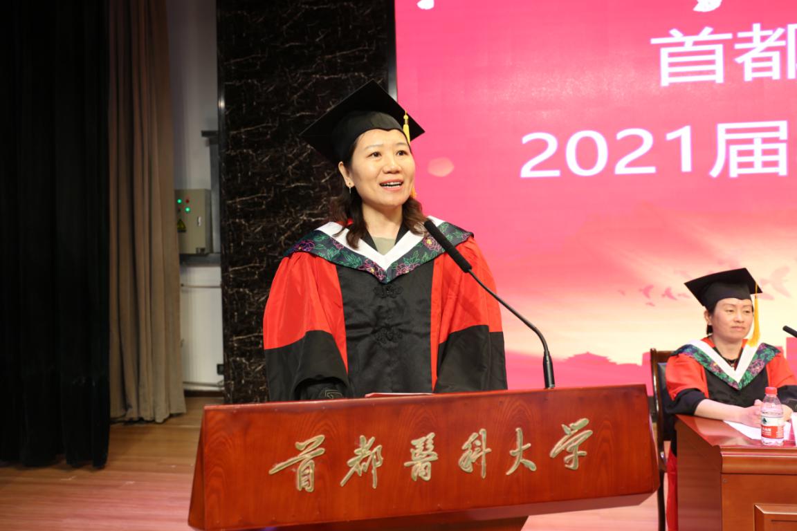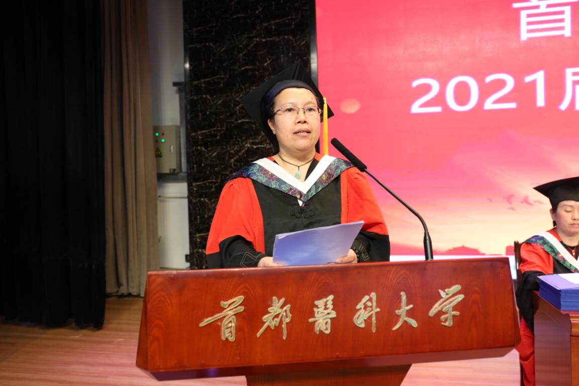 嗨皮漫画 副院长赵艳芝宣读学位授予决定。2021年,嗨皮漫画 我院共有208名学生获得学士学位,469名高职高专毕业生获得毕业证书。
