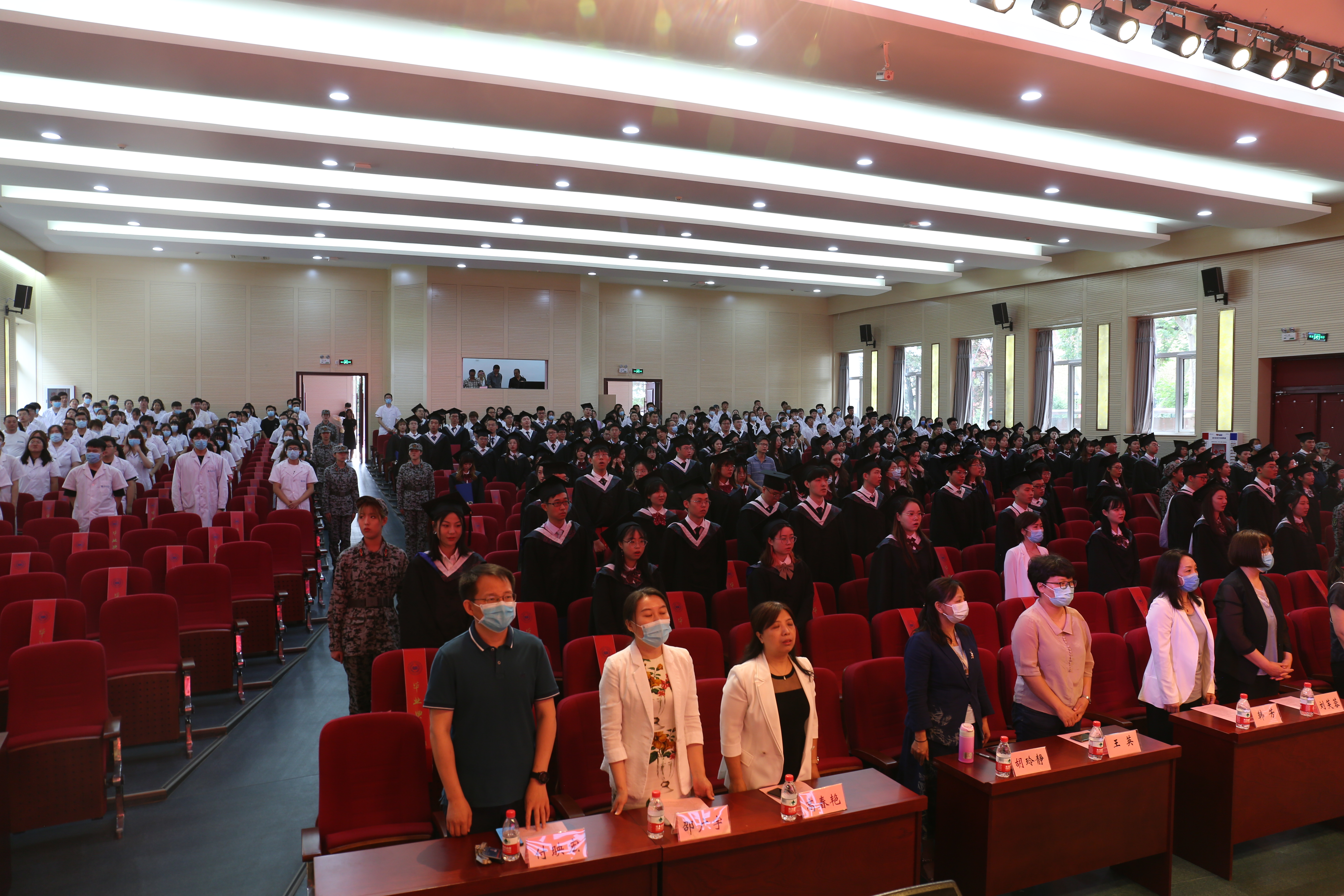 百年恰是风华正茂,又是一年桃李芳菲。在举国同庆建党百年华诞之际,7月6日上午,我院本专科生毕业典礼暨学位授予仪式在嗨皮漫画 报告厅隆重举行。677名学子顺利完成学业,即将秉承“扶伤济世 敬德修业”校训精神,扬起青春之帆,开启医路之旅。嗨皮漫画 领导班子全体成员、临床教学医院相关领导出席典礼,为在场毕业生颁发学位证书、拨正流苏。2021届毕业生、各学系党支部书记、主任、嗨皮漫画 相关部门主要负责人参加了典礼。典礼由嗨皮漫画 党委副书记崔群颖主持。