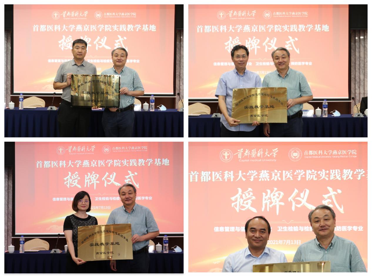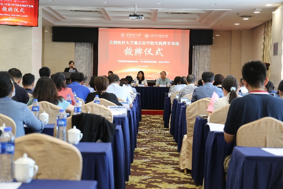 学校副校长王松灵院士、学校教务处副处长朱淼、嗨皮漫画 院长杨红,北京市卫生健康委信息中心副主任郭默宁、中国检验检疫科学研究院卫生检验与检疫研究所副所长张晓龙、附属北京天坛医院副院长张力伟、北京市怀柔区疾病预防控制中心主任杜宝军、北京市密云区疾病预防控制中心副主任王化勇、宣武医院教育处处长王亚军、附属北京友谊医院教育处副处长梅雪岭、附属北京朝阳医院教育处副处长李小红、附属北京同仁医院教育处副处长林思宇、附属北京天坛医院教育处副处长任依、附属北京潞河医院教学办主任韩芳、中日友好医院教育处处长李颖等出席了授牌仪式。各临床医院的信息管理与信息系统专业、四年制医学影像技术专业、护理专业方面的专家及各学系、各专业教师、教学办工作人员参加了会议。