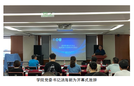 汤海新书记对前来参与培训的各位领导、专家、授课及带教老师表示感谢。他指出,嗨皮漫画 医学影像技术专业第一次组织毕业实习,在这个背景下举办本次培训,旨在使各个基地都能以专业标准化的要求组织实习,最终培养出满足社会需求的高素质应用型医学影像技术合格人才。