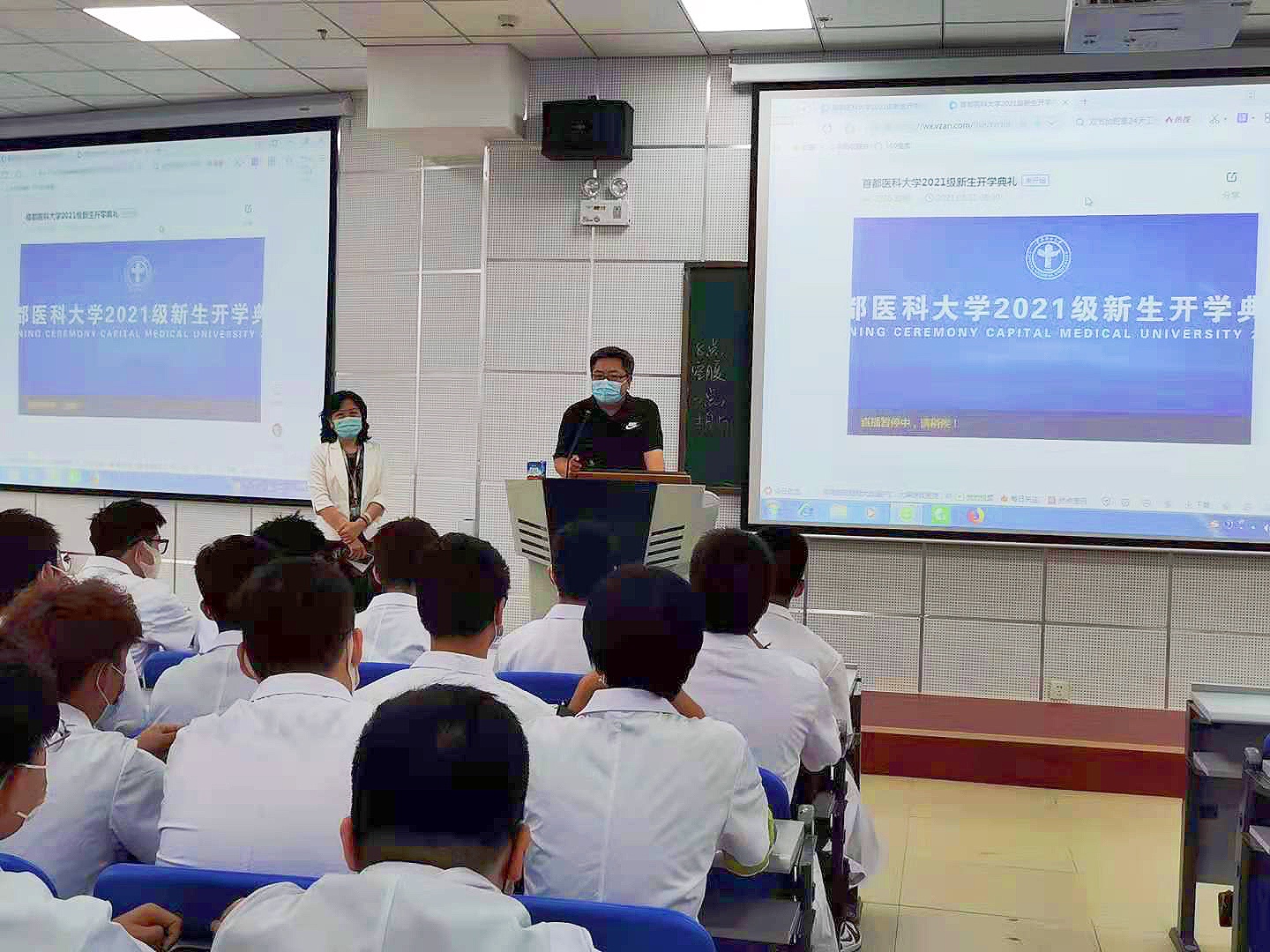 领导、各学系党支部书记、学系主任、辅导员、兼职班主任以及全体分会场新生通过直播形式观看。