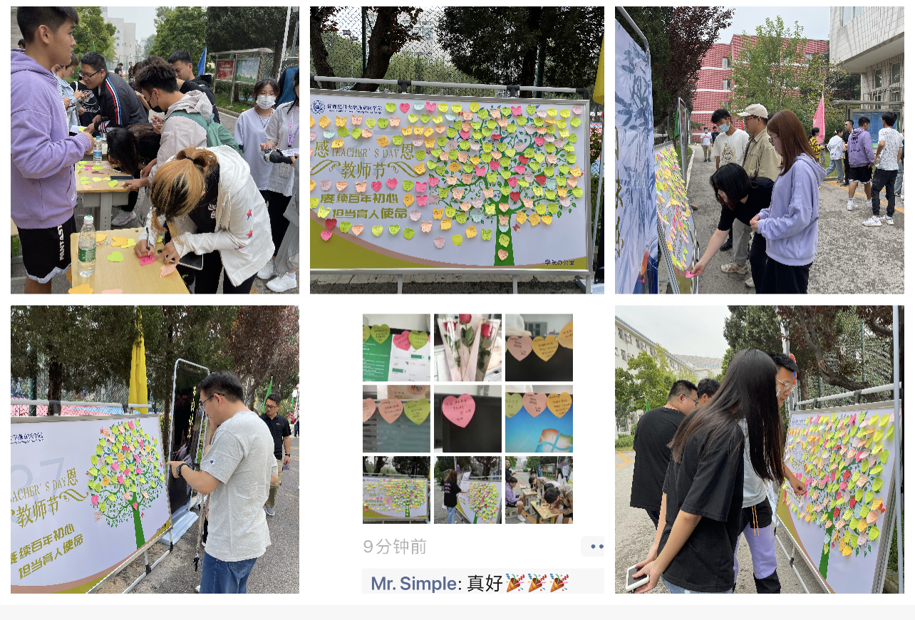 感念师恩,感谢有您。在第37个教师节来临之际,我院成功举办第三届“表白___老师”主题师生互动活动,学生纷纷手写对老师的感恩和祝福,老师纷纷表达收到祝福后的愉悦和幸福。九月的校园在师生的感恩互动中营造出尊师重道、爱生乐教的良好氛围。