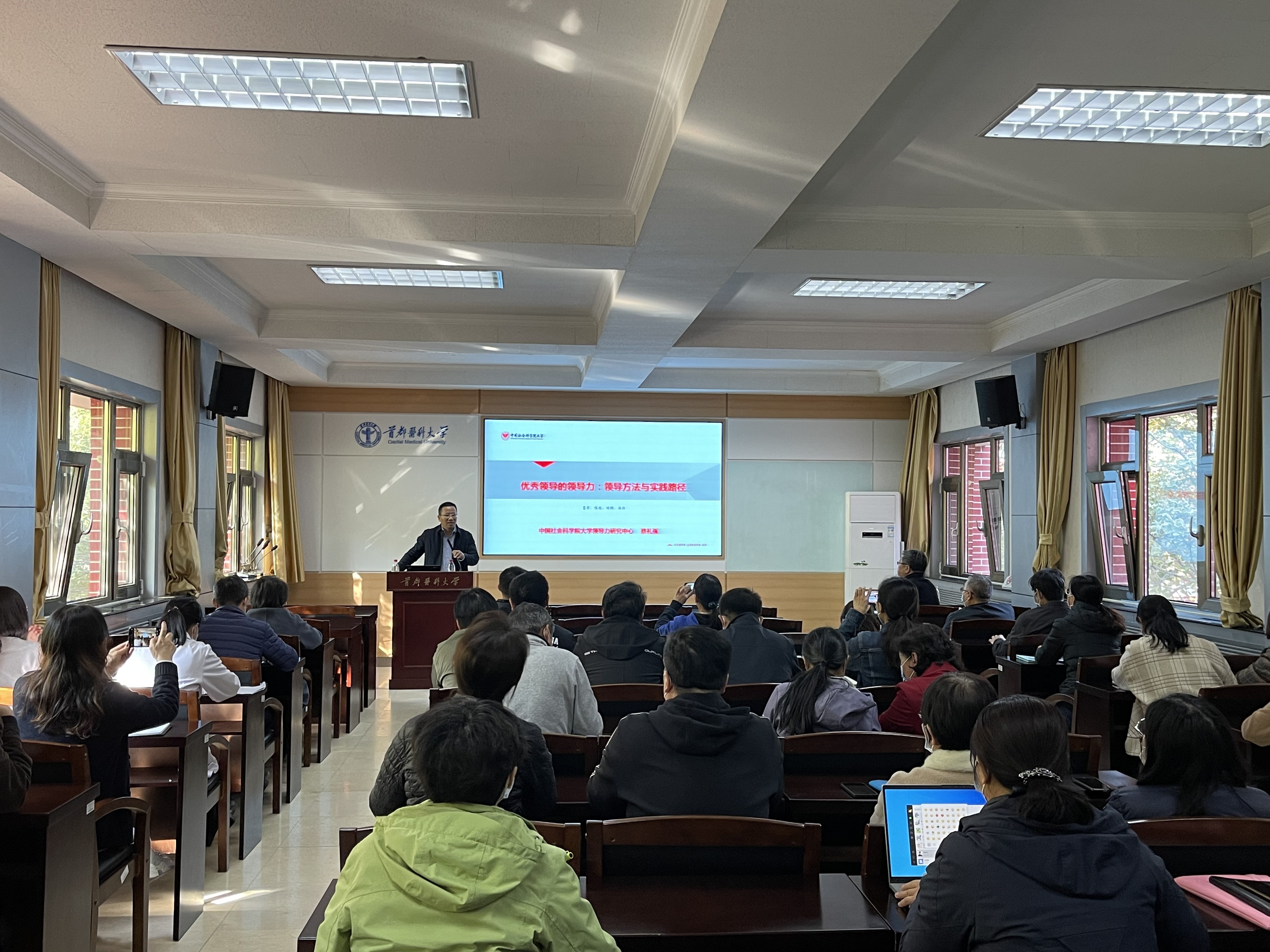 蔡礼强教授以《领导的领导力:领导方法与实践路径》为题讲授开班第一课。蔡教授从中高层领导的职责定位与工作衡量标准、多重角色与领导力理论以及中高层领导的三重领导力与修炼路径三方面解读了中层干部的管理角色和自我修炼,他结合一个个真实案例,诠释了专业技术和专业人才是核心竞争力,决定专业人才成长且让所有要素能够有效发挥作用的是管理,是领导力的观点。他指出,一个合格的管理者要在保证方向正确、方法准确的前提下,提高效率,提升效能,体现效果。蔡教授的授课生动、幽默、风趣,在博得大家热烈掌声和共鸣的同时,又发人深思,让大家认识到管理不仅是一门科学,更是一门艺术。