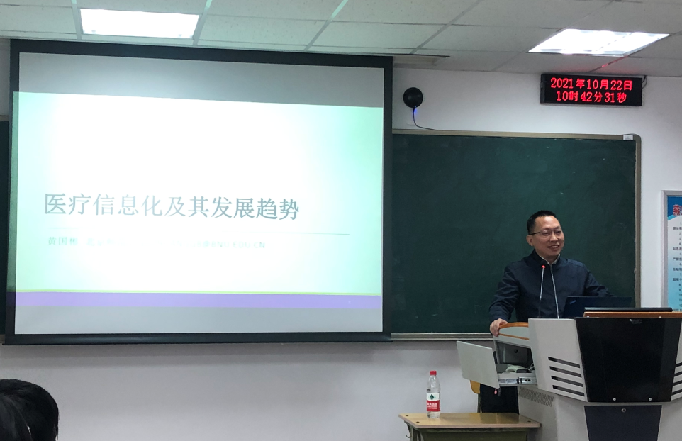 黄国彬副教授通过医院挂号方式的演变到远程医疗、互联网医院兴起的发展轨迹,展示了信息技术与互联网技术在医疗卫生领域的广泛应用,及其给医疗服务方式带来的巨大改变,强调了卫生信息管理对医疗服务水平提升的重要支撑作用。黄老师还向同学们简要介绍了医疗信息的大数据化发展前景。他指出,医疗信息化的发展过程中存在诸多难题需要解决,解决这些难题是医疗服务由信息化转变为数字化,再到网络化以至大数据化及智能化发展的必经之路。