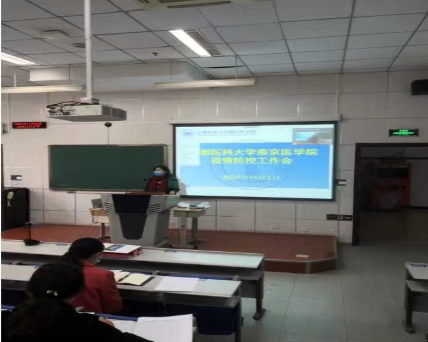 会上,院长杨红传达了顺义区教育系统传染病疫情防控工作领导小组《关于加强近期校园疫情传播风险管理的通知》、《教育系统风险人员专员处置指引(1.0版)》精神,通报了嗨皮漫画 相关人员的摸排情况。她指出,当前国内新冠疫情呈多点散发,北京多个区域出现确诊病例,疫情防控形势严峻。嗨皮漫画 各部门(学系)要严格贯彻落实教育部、北京市疫情防控工作要求,时刻关注疫情防控新形势,及时了解疫情防控新动态,做到与时俱进防控,确保师生安全。她强调,一是要认真开展相关人员流调排查工作,如有家人涉及疫情防控的相关情况,需要第一时间上报嗨皮漫画 ,由嗨皮漫画 疫情防控工作组进行应急处置;如自己或身边家人出现发热、腹泻等11类症状时,需要第一时间上报嗨皮漫画 并及时到附近医院发热门诊就医;二是要倡导教职员工实行“两点一线”上下班模式;在校学生非必要不出校,非必要不出顺;三是科学引导师生员工在校园内坚持科学佩戴口罩,做到勤洗手、常通风、“一米线”等卫生习惯。