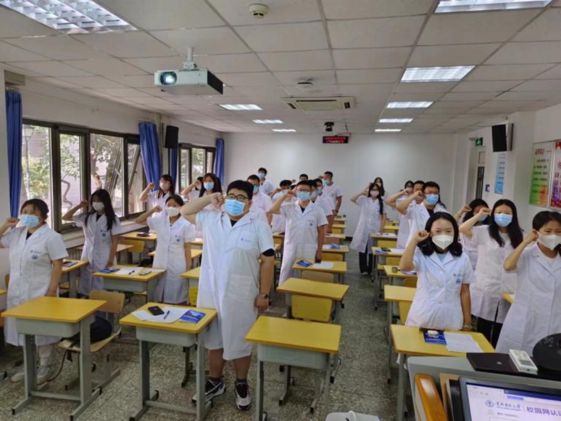医学信息技术与管理学学系组织全体新生参加医学生誓言宣誓,学习《学生在校学习生活健康防疫手册》