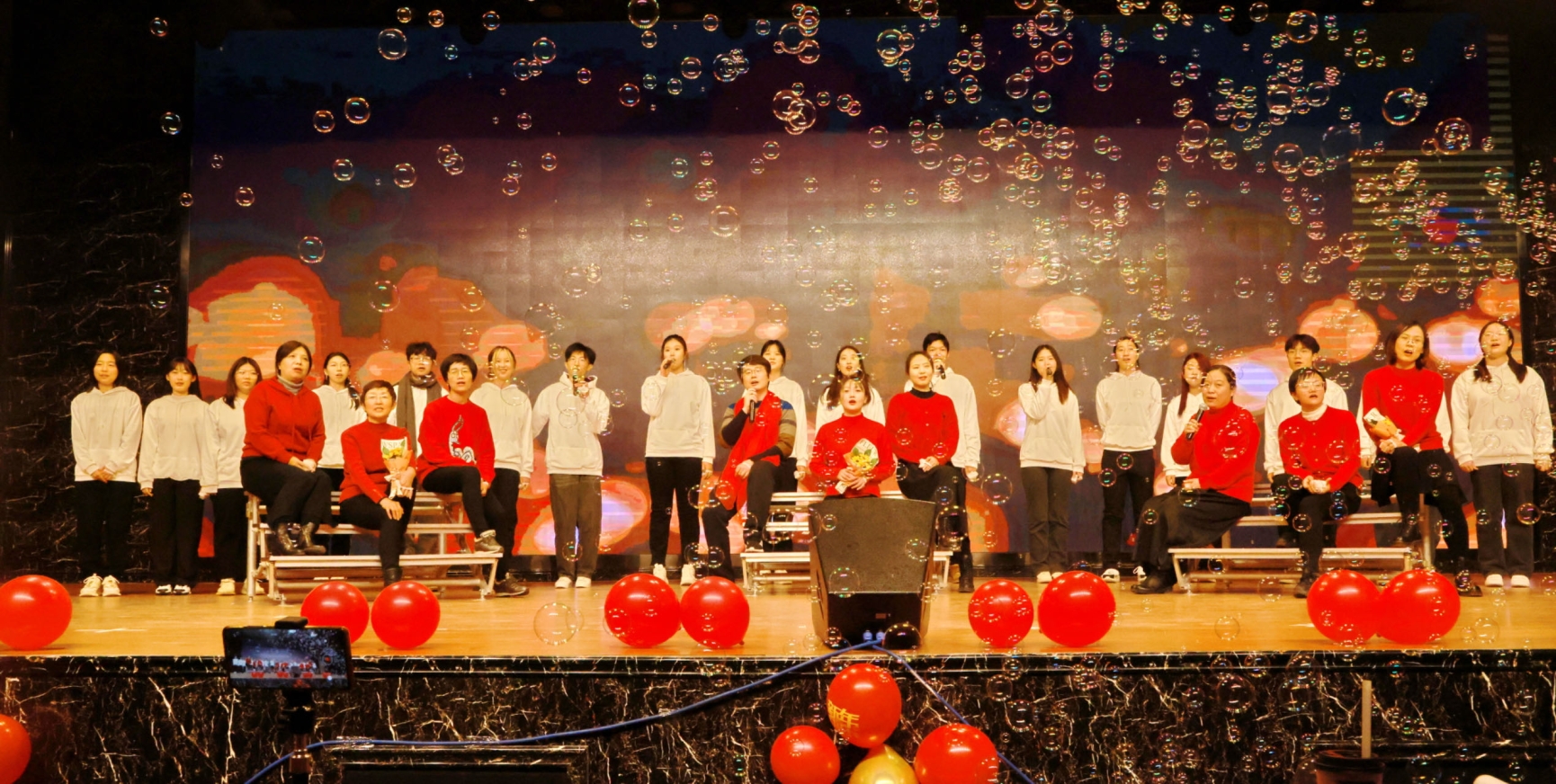 检验学系师生代表用串烧歌曲《我们都是追梦人》回顾了学系2023年的点点滴滴,并为嗨皮漫画 送上新年祝福。