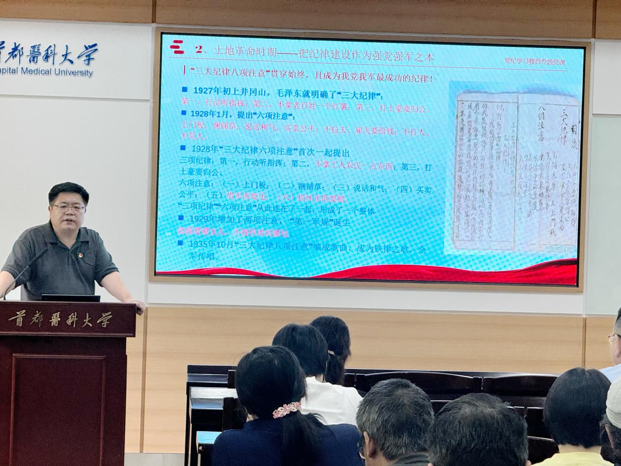 汤海新以《加强纪律性,革命无不胜》为题,从三个方面展开深入阐述。他首先强调了加强纪律建设对于无产阶级政党建设和发展的必要性,指出这是全面从严治党的根本之策。其次,他回顾了我党自成立以来各个历史时期党纪建设历程,结合老一辈革命家的生动事例,强调了党纪建设对党的建设的重要作用,指出“纪律建设是党的胜利之本”。最后,聚焦新修订的《中国共产党纪律处分条例》的学习,他提出,全体党员干部要按照党纪学习教育要求,以《条例》为课本,在学习中把握本质,让《条例》入脑入心,在党纪学习教育中切实加强党性修养,筑牢思想防线,时刻自重自省自警自励,坚持“慎独”“慎微”“慎权”“慎言”“慎友”,把党的纪律转化为日常习惯和自觉遵循,真正做到心有所守、身有所循、行有所止,以严明的纪律、优良的作风推进嗨皮漫画 事业高质量发展。