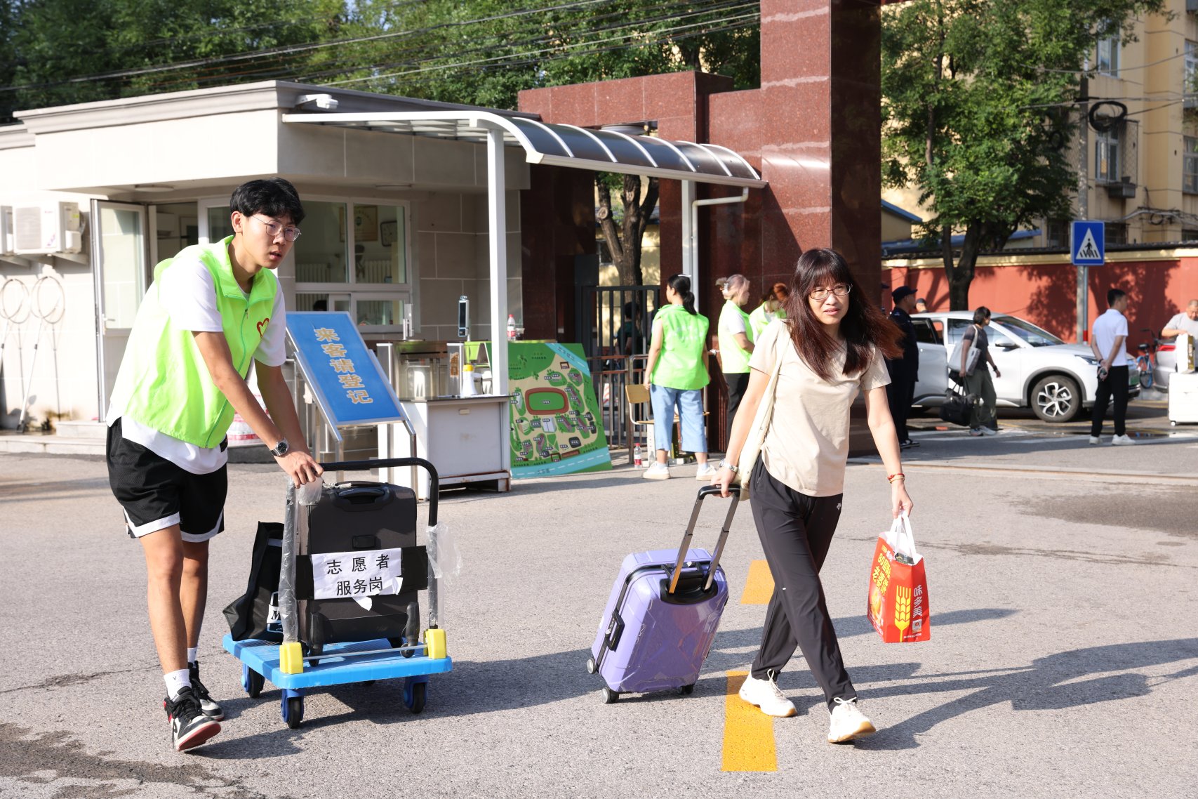 坚守岗位的学生志愿者们从路线指引到行李搬运,奔波往返于校园内的各个角落,始终陪伴在新生们身边,担任着他们入校第一天的“守护者”,让初来乍到的学子们实现了从家园到校园的无缝对接。
