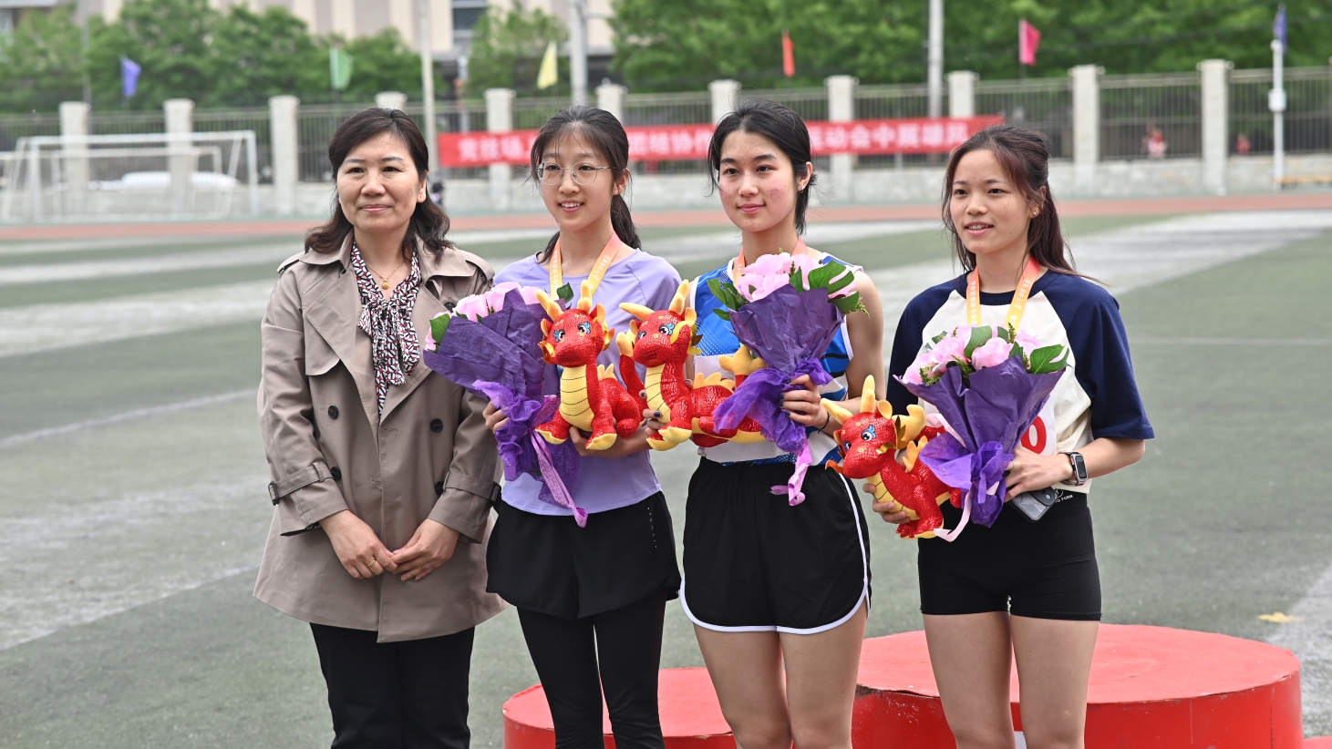 杨红院长为我院女子400米冠军刘思彤同学颁奖