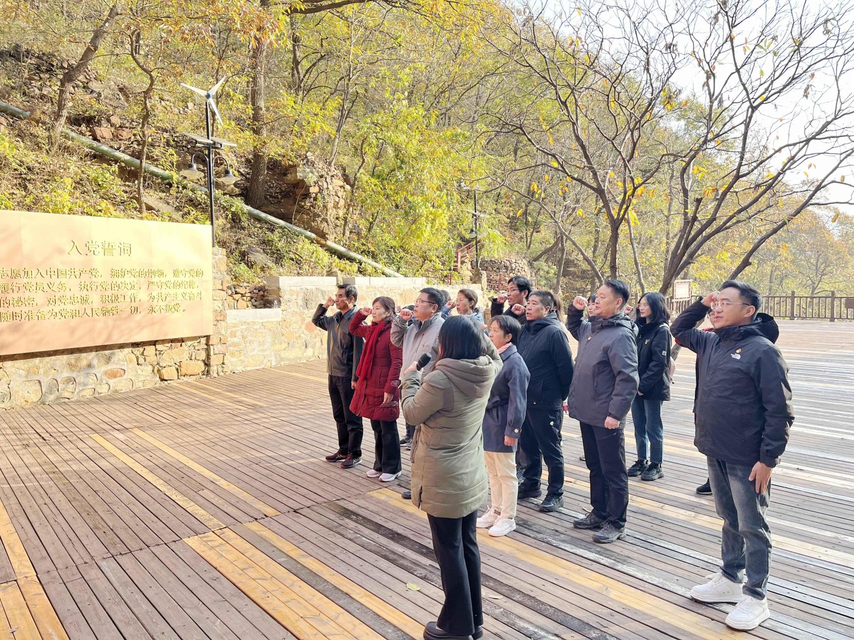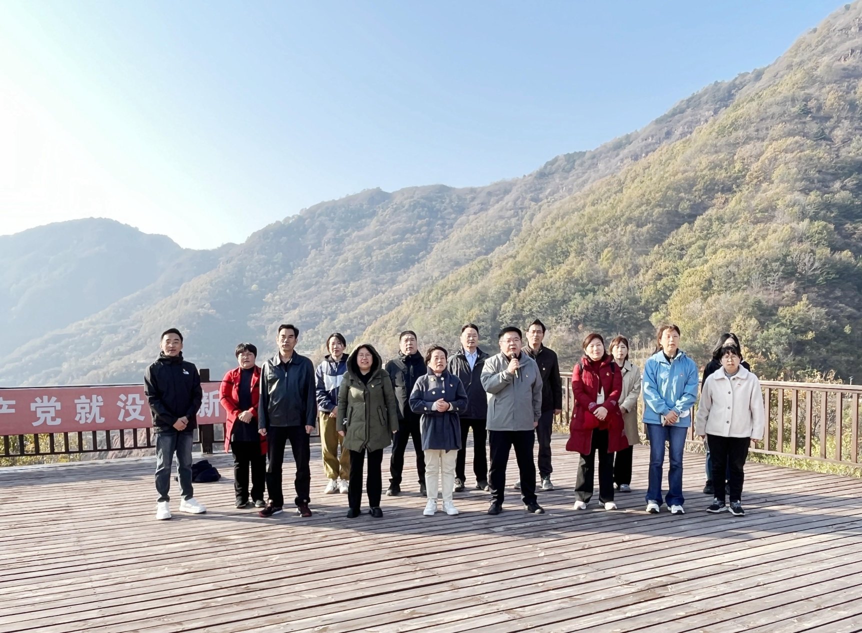 全员重走抗战时期唯一的小路,跨越时空感受革命先辈的足迹,体验革命先烈们的艰苦不易,体会前仆后继、不屈不挠、团结奋斗、反抗侵略的伟大的民族精神。在半山腰处的红歌台,大家以歌颂史,唱响了对党的热爱,唤醒了红色的记忆。