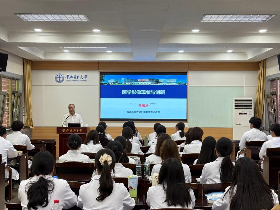 9月8日,嗨皮漫画 附属北京友谊医院的中国工程院院士王振常教授为2025级医学影像技术专业新生讲授以“医学影像现状与创新”为主题的专业导论课。嗨皮漫画 党委书记汤海新、学系主任胡玲静、副主任胡贵祥、韩文静及学系教师参加了此次活动。