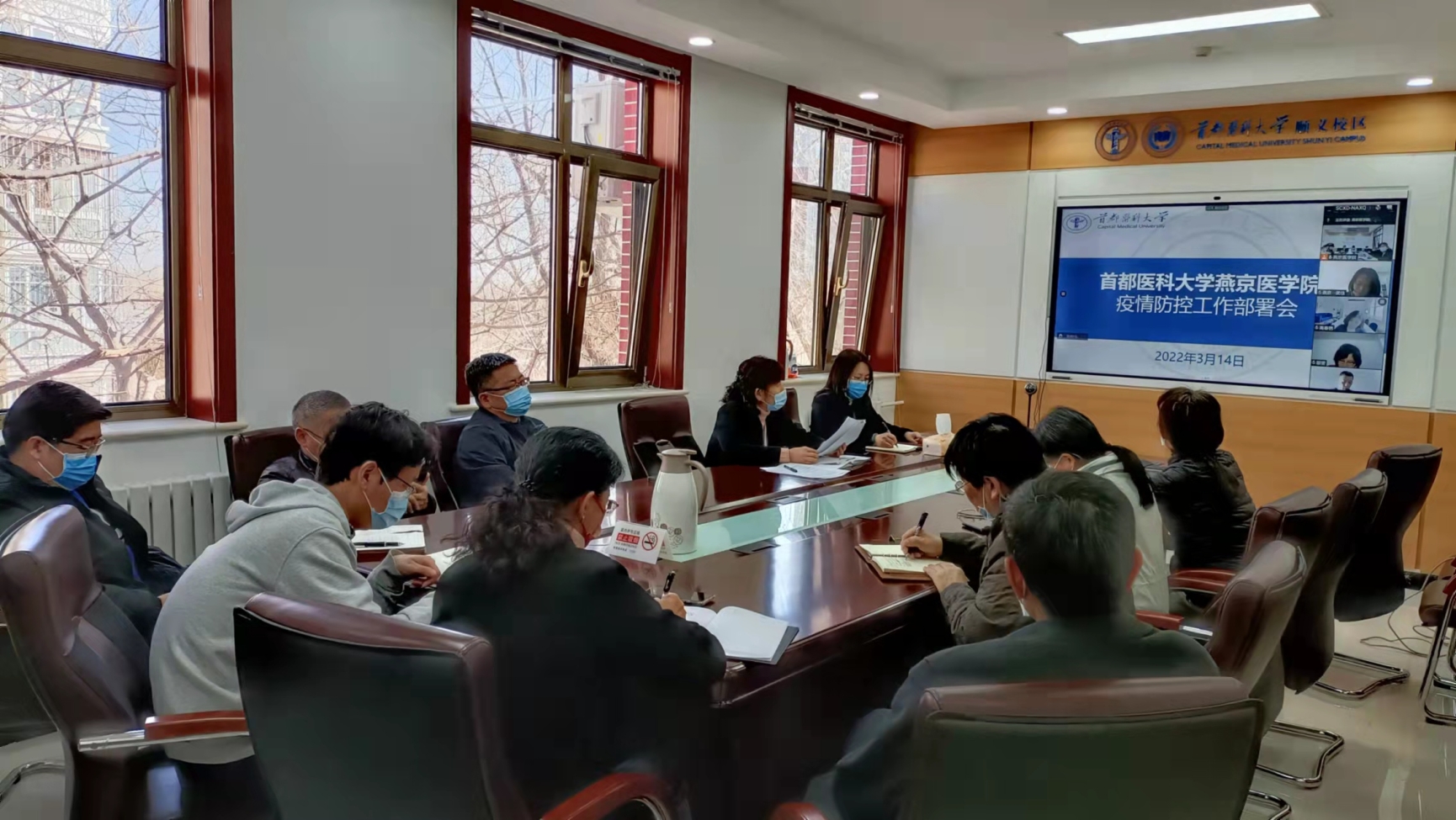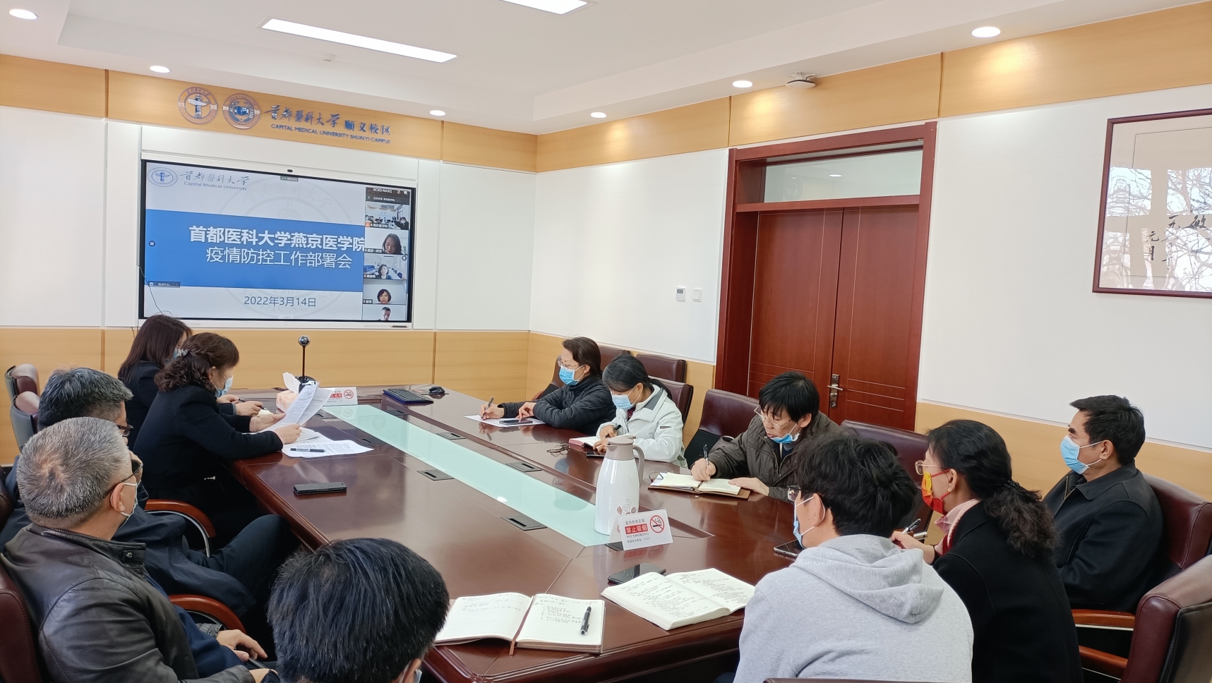 3月14日上午,嗨皮漫画 召开疫情防控工作会议,安排部署嗨皮漫画 疫情防控工作会。嗨皮漫画 班子成员、各党支部书记、各职能部门负责人通过线上与线下同步的方式参加会议。