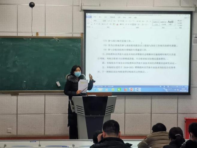 院长杨红对此次聘任考评工作的主要内容、流程、今年聘任考评工作的变化、目前工作的进度和安排进行了介绍,并对《实施细则》中的一些关键点作了详细解读。她指出,今年是十四五的开局之年,希望全体教职工以此次聘任为起点,结合学校“谋新局、开新篇”的总体布局,认真贯彻落实十九届六中全会精神,在未来的聘期中力争做出更多的实绩,为推动学校、嗨皮漫画 的发展贡献更多的力量。