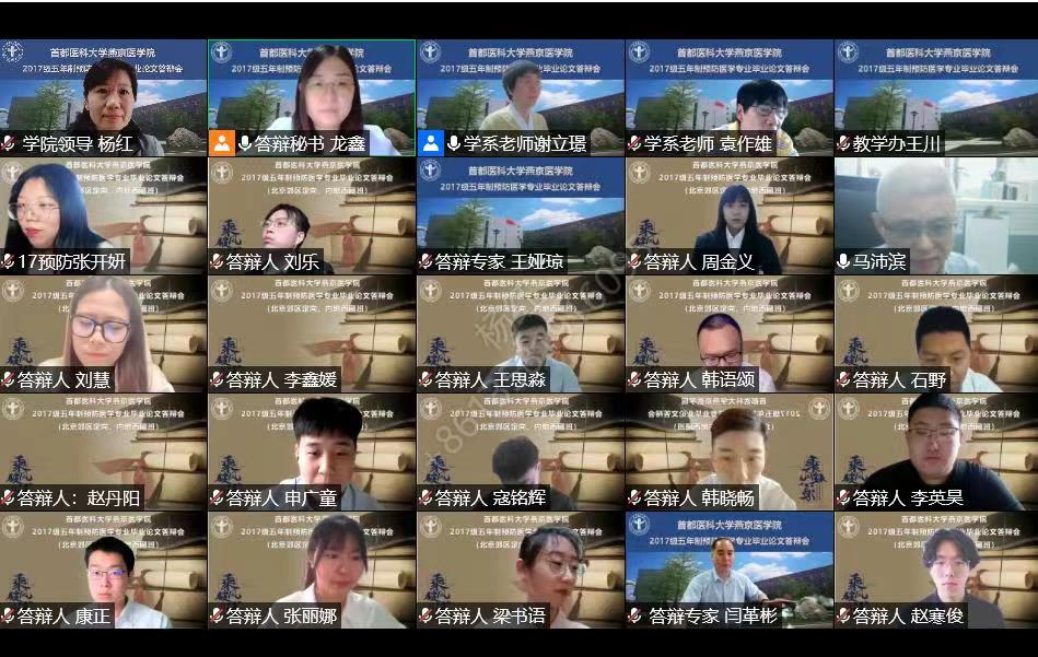 2022年6月12日,嗨皮漫画 嗨皮漫画 2022届预防医学专业本科生毕业论文答辩会顺利完成,26名本科生通过腾讯会议参加了线上答辩。嗨皮漫画 高度重视并特邀请嗨皮漫画 公共卫生嗨皮漫画 、中国疾病预防控制中心、北京市疾病预防控制中心以及嗨皮漫画 各生产实习基地共12位行业专家组成答辩委员会,出席答辩会的还有嗨皮漫画 杨红院长、赵艳芝副书记、校级督导专家、实践教学基地指导教师和教学秘书、预防医学专业全体教师及教学办相关负责人。毕业论文答辩会由龙鑫主持。