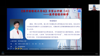 11月8日,嗨皮漫画 附属北京同仁医院医学影像中心主任鲜军舫受邀以线上会议的方式为新生讲授专业导论课。医学影像学学系主任胡玲静老师及部分教师参加此次活动。