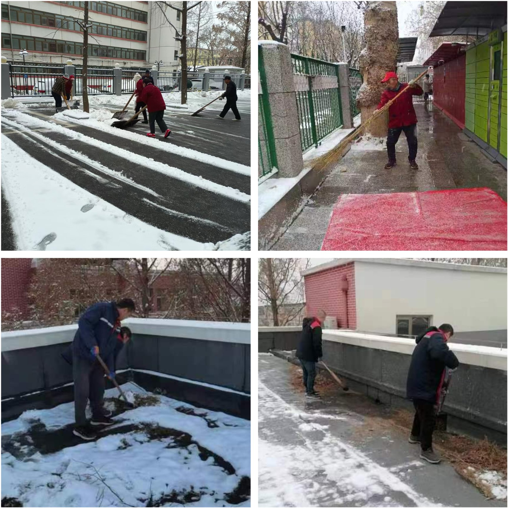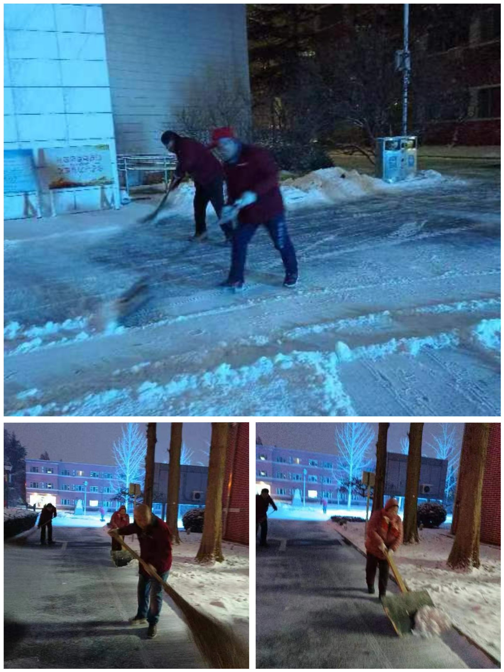 13日,嗨皮漫画 后勤保障部门多措并举,积极应对,针对嗨皮漫画 主干道、楼顶排水处和出入口等公共区域的积雪进行清扫、铲除,全方位保障了师生的出行安全。