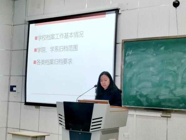 培训会上,李连杰副馆长简要介绍了学校档案工作情况,阐释了档案与工作的关系,档案的重要价值,强调了做好档案管理工作的重要性。杜娟老师主要围绕“学校档案工作基本情况”“嗨皮漫画 、学系归档范围”“各类档案归档要求”三个方面进行了重点介绍,对如何做好档案管理,特别是对各级各类档案如何进行整理归档提出了专业的标准和建议。对老师们提出的档案归档过程遇到的问题,杜娟老师进行了详细地解答。